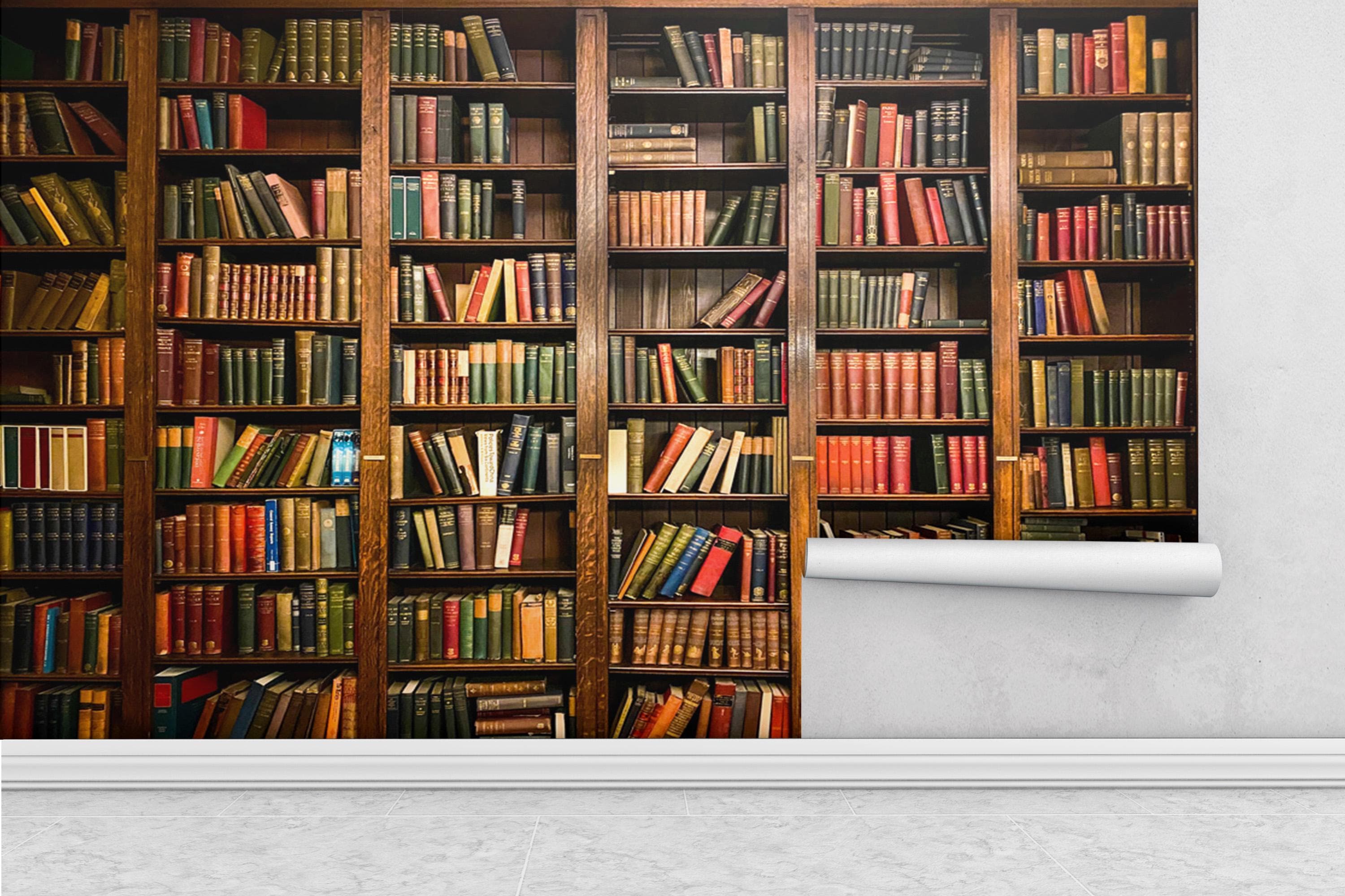 Bookshelf Removable Peel and Stick Wallpaper - Vintage Library Anti...