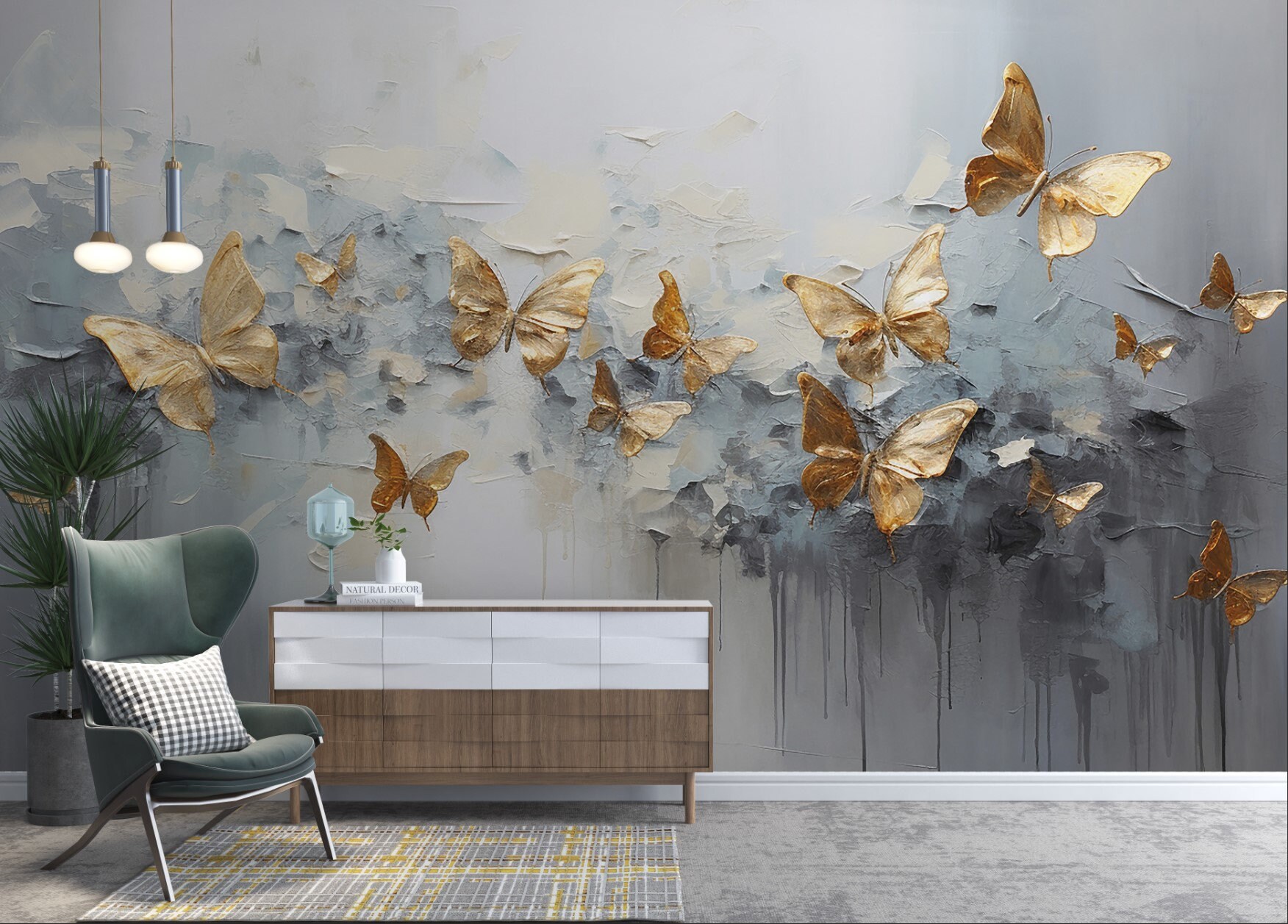 "Golden Butterflies Wallpaper Give your living space a new feeling with Wallpaperfect! If your ...