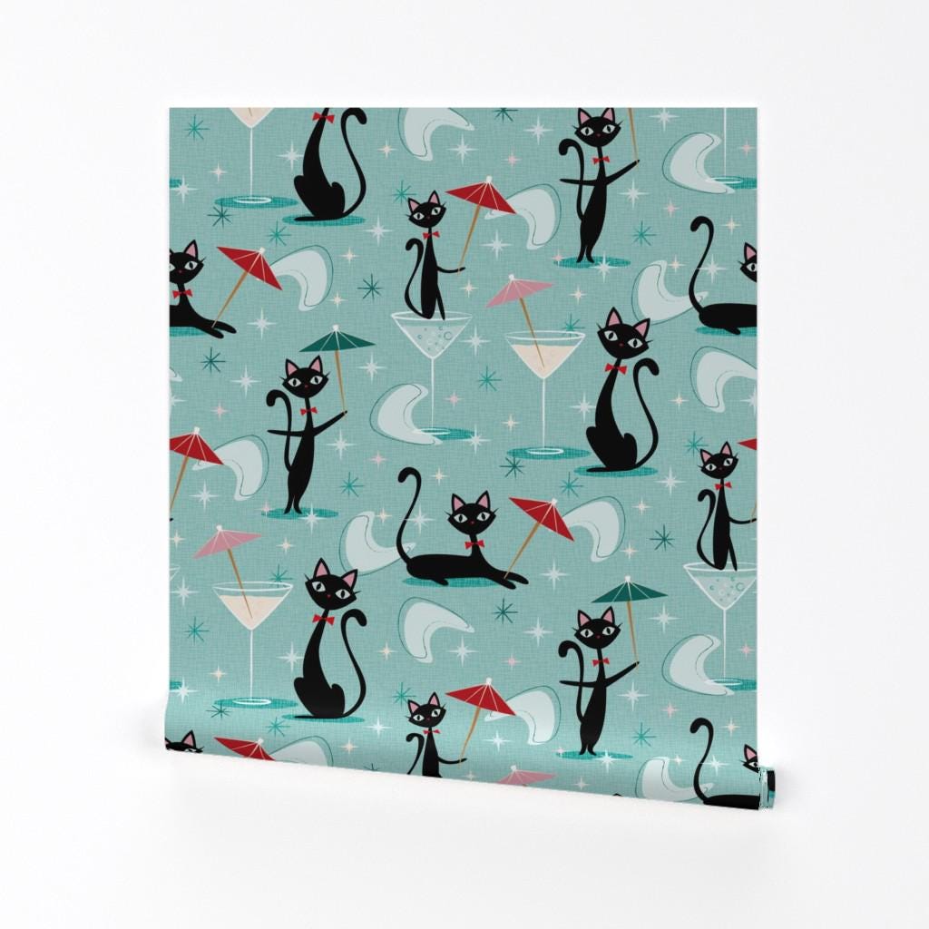 Kitsch Cats Wallpaper - Cocktail Umbrella Cats By Bamokreativ - Mid...