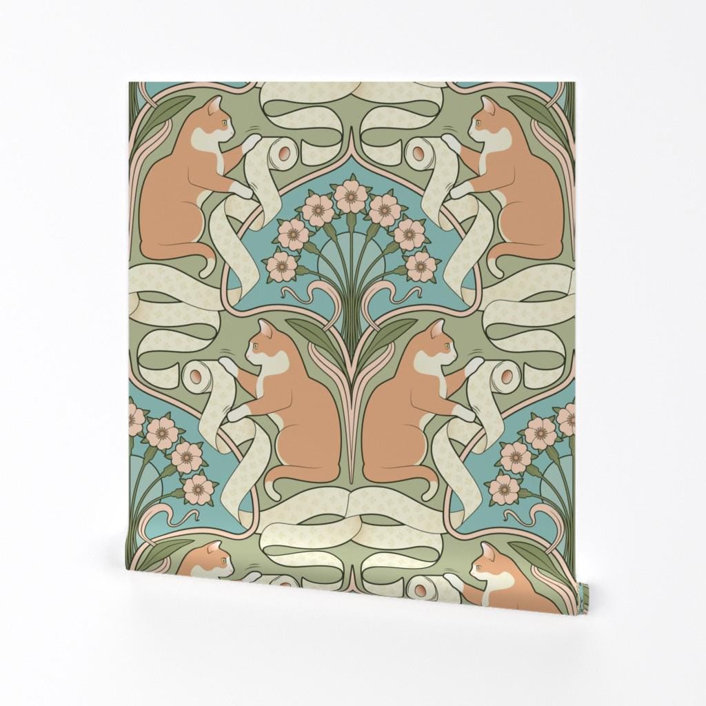 Whimsical Removable Peel and Stick Wallpaper - Art Nouveau Art Deco...