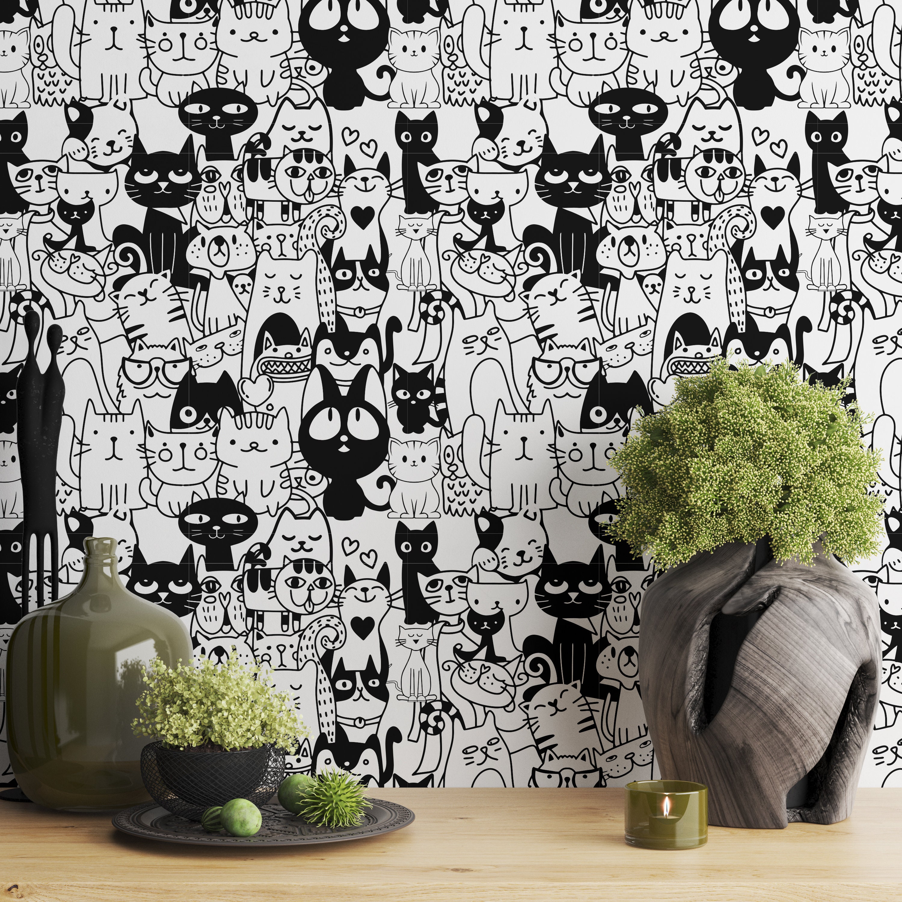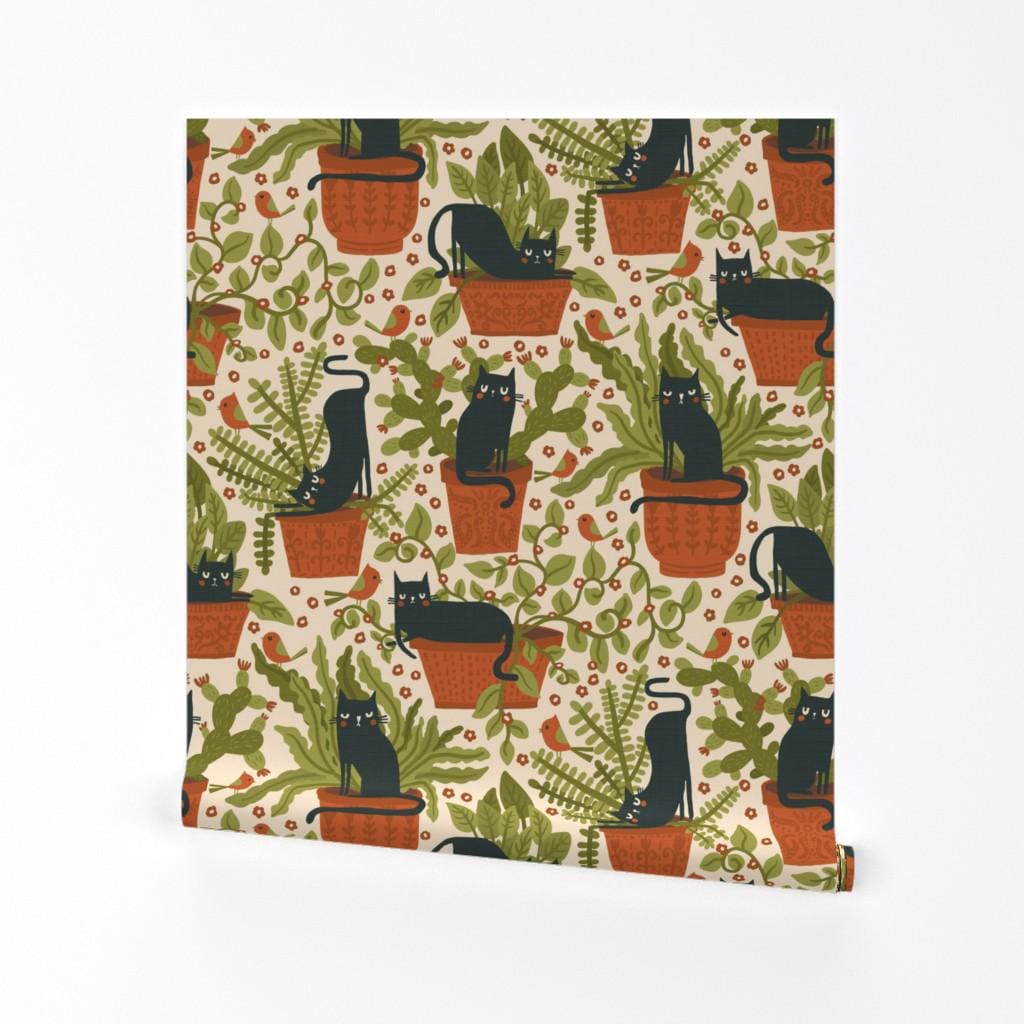Black Cats Removable Peel and Stick Wallpaper - Plants Black Cats B...