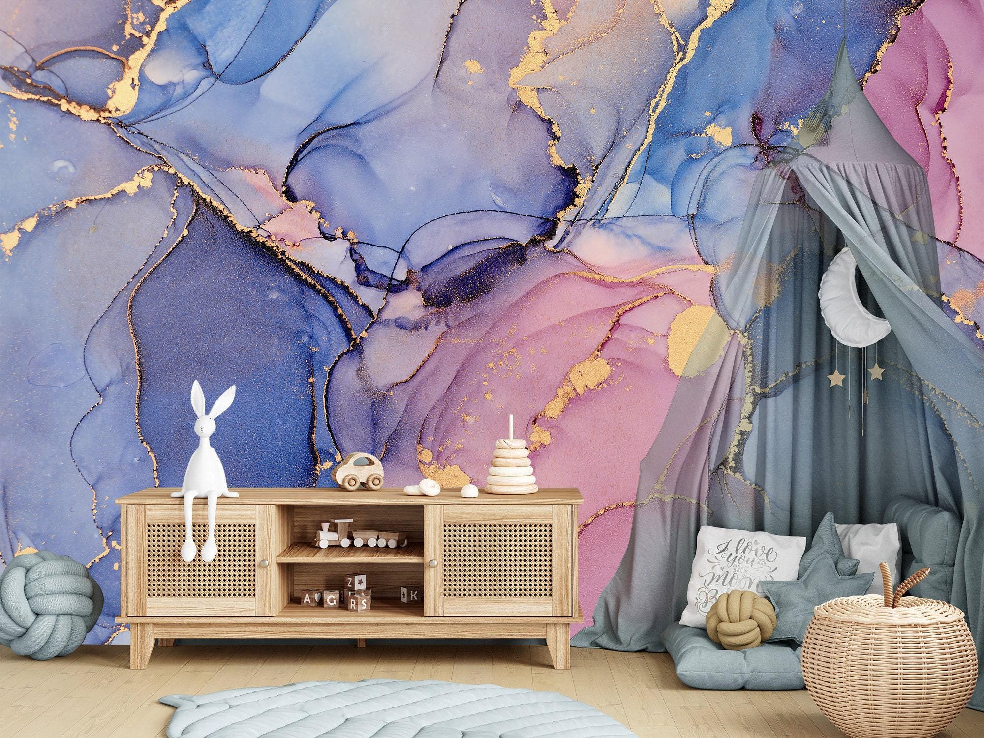 Ombre Wallpaper Peel and Stick Teen Girl Bedroom, Alcohol Inks Wall...