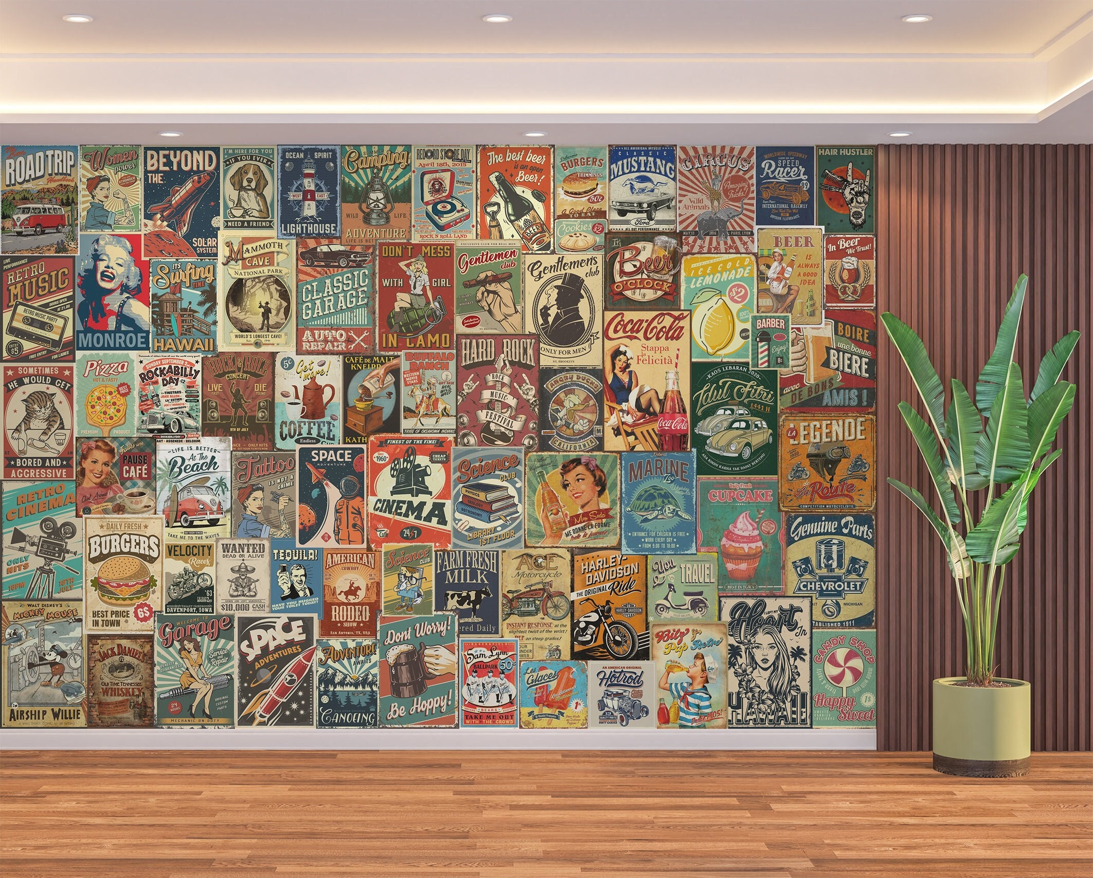 "Retro Pop Art Wallpaper Vintage Posters Collage Wall Mural Peel and Stick Wallpaper Living Roo...