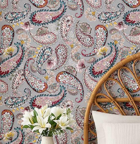 S4Sassy Paisley & Floral Wallpaper- Asian Style Wall Covering, ...
