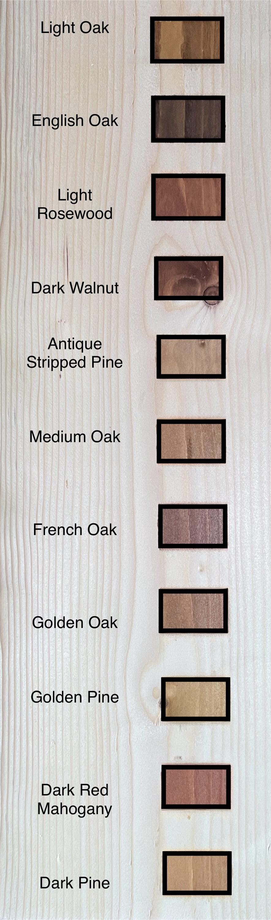 The wooden items in our shop are mostly available in 12 different stain finishes. Please see the ima...