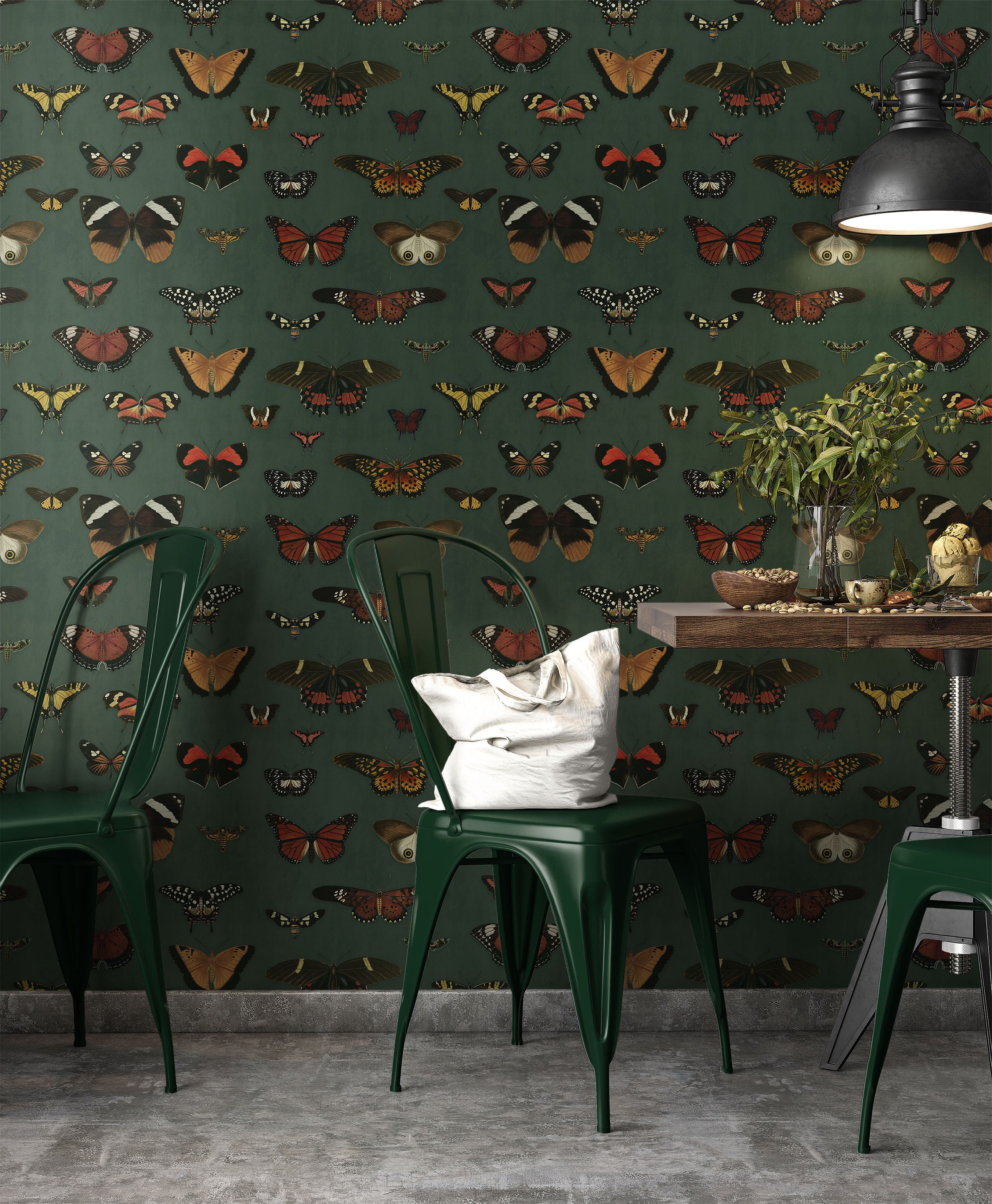 Dark Green Butterfly Wallpaper Peel and Stick | Dark Green Botanica...