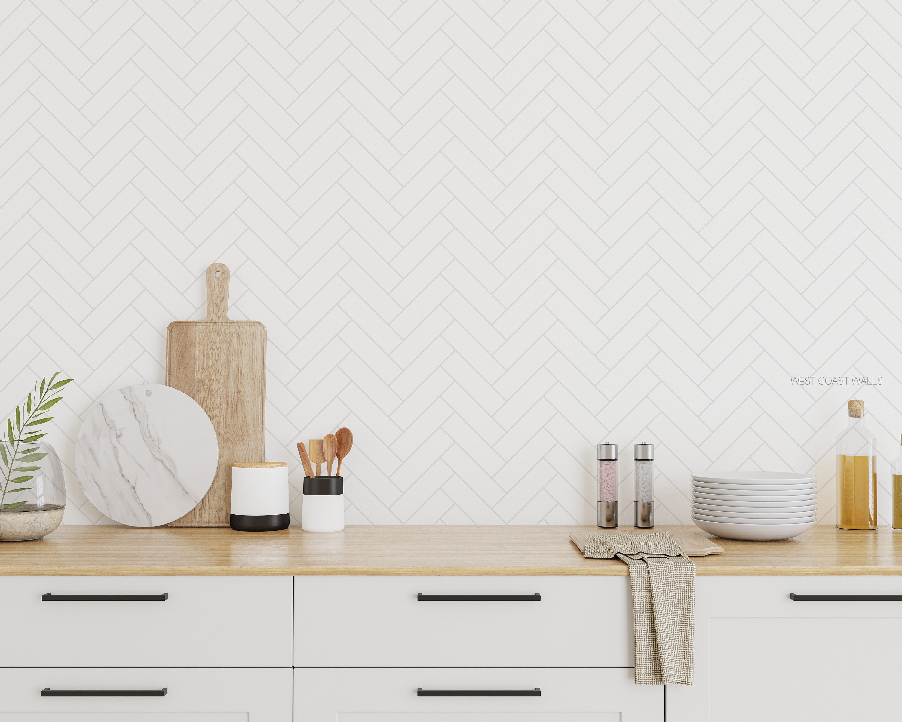 White Herringbone Tile Wallpaper / Tile Wallpaper / Herringbone Wal...