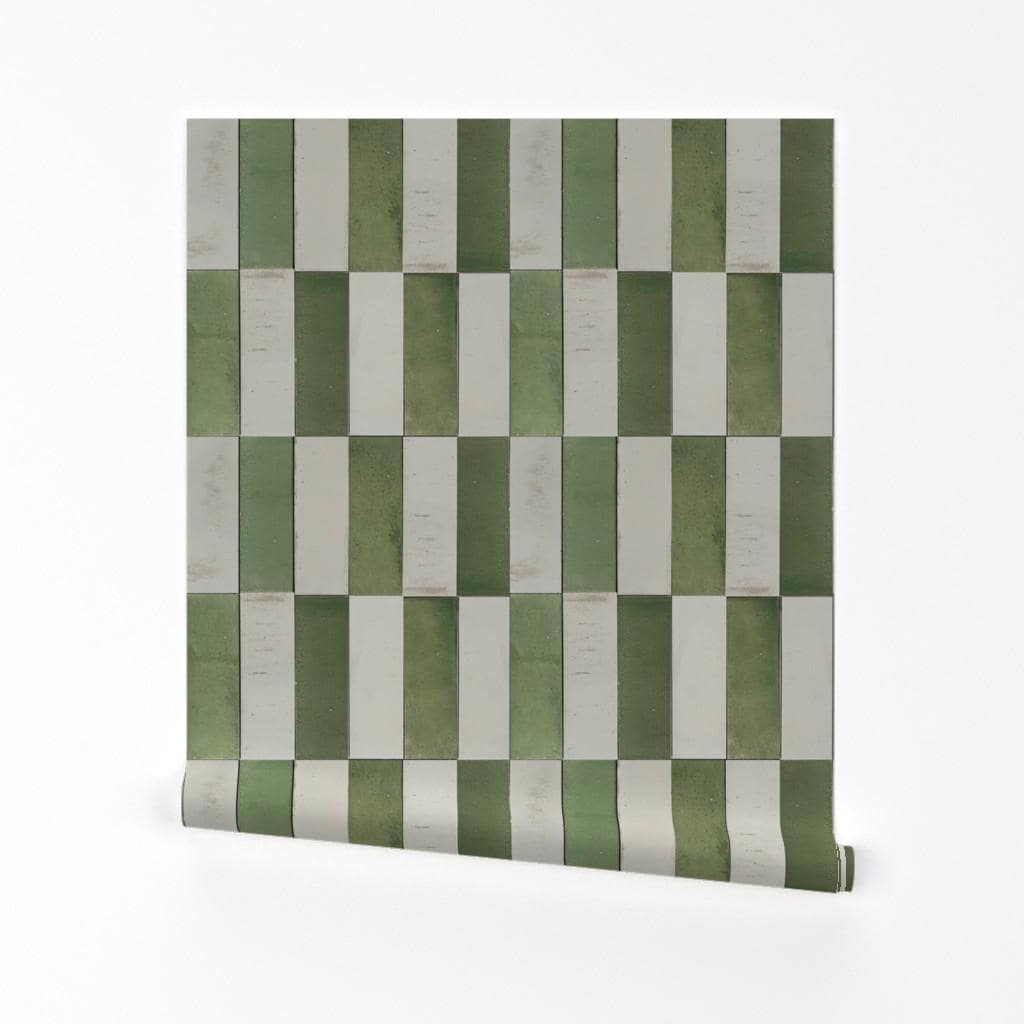 Zellige Tile Removable Peel and Stick Wallpaper - Green Beige Faux ...