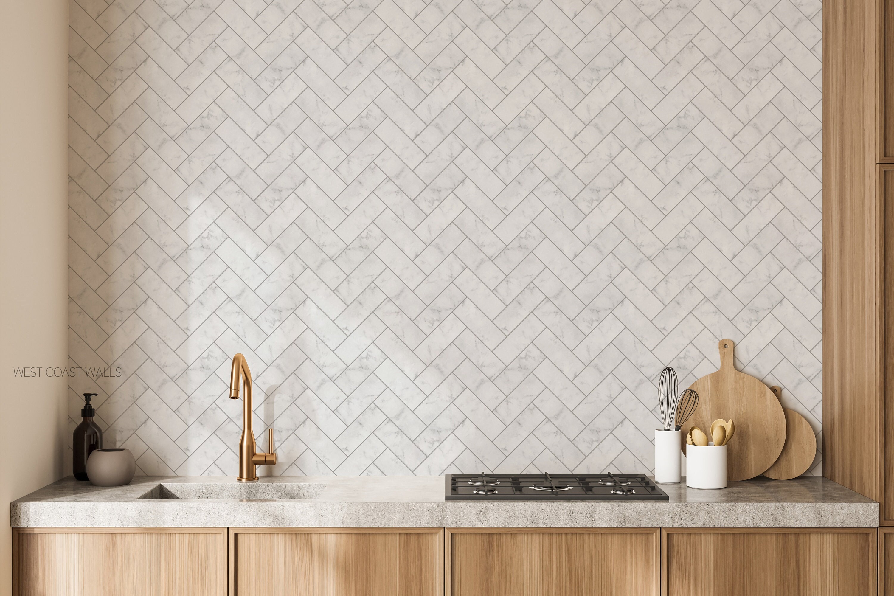 Marble Herringbone Tile Wallpaper / Tile Wallpaper / Herringbone Wa...