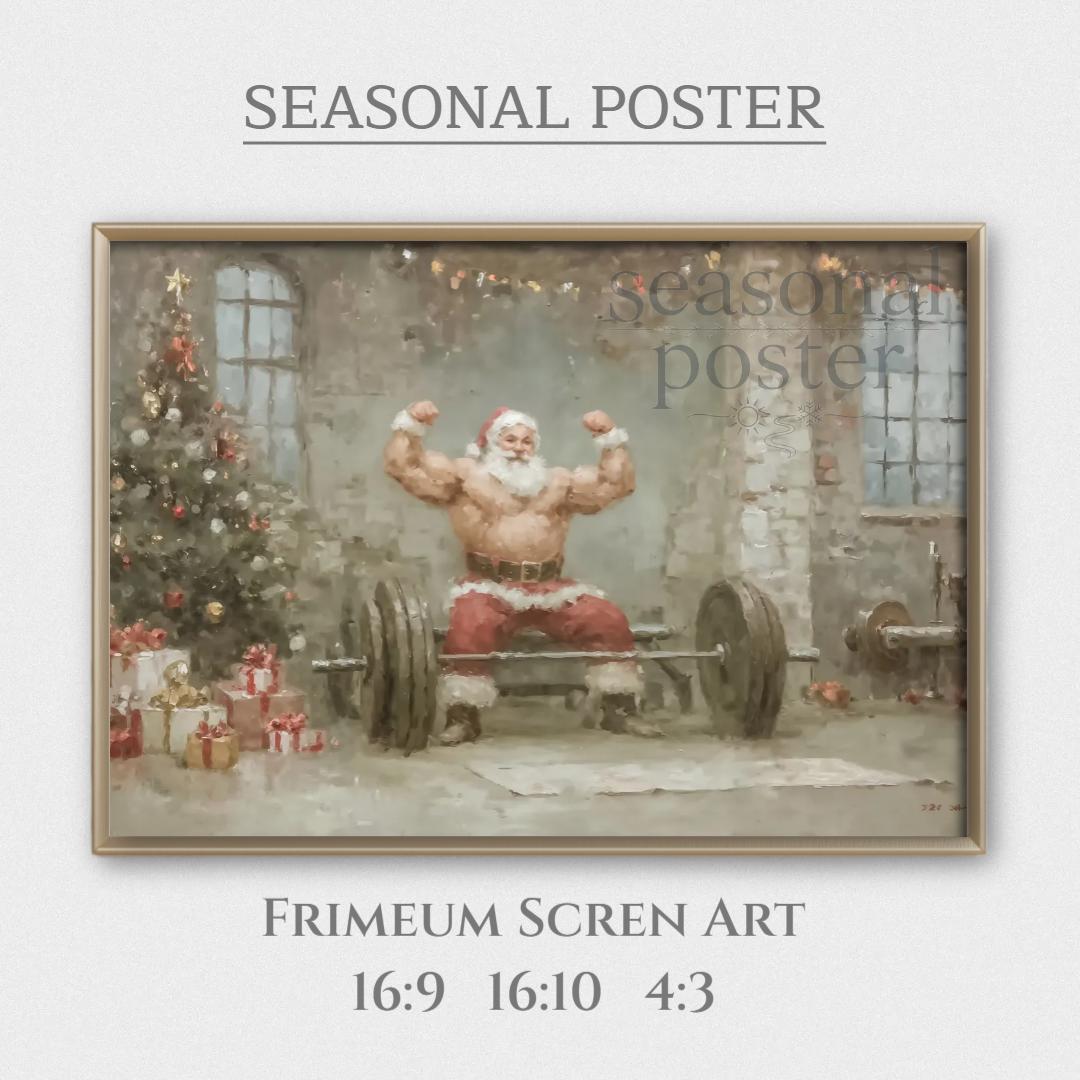 Christmas Santa Gym Frame TV Art, Muscular Santa Wallpaper, Wall De...