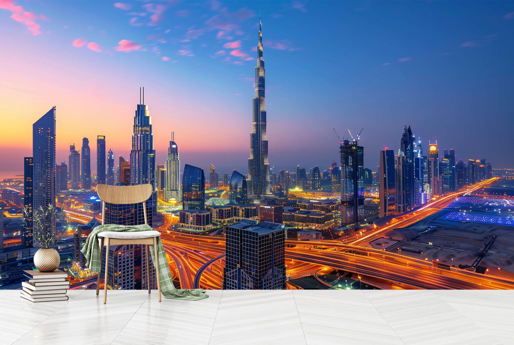 Dubai Cityscape Wallpaper - Modern Peel and Stick Wall Mural