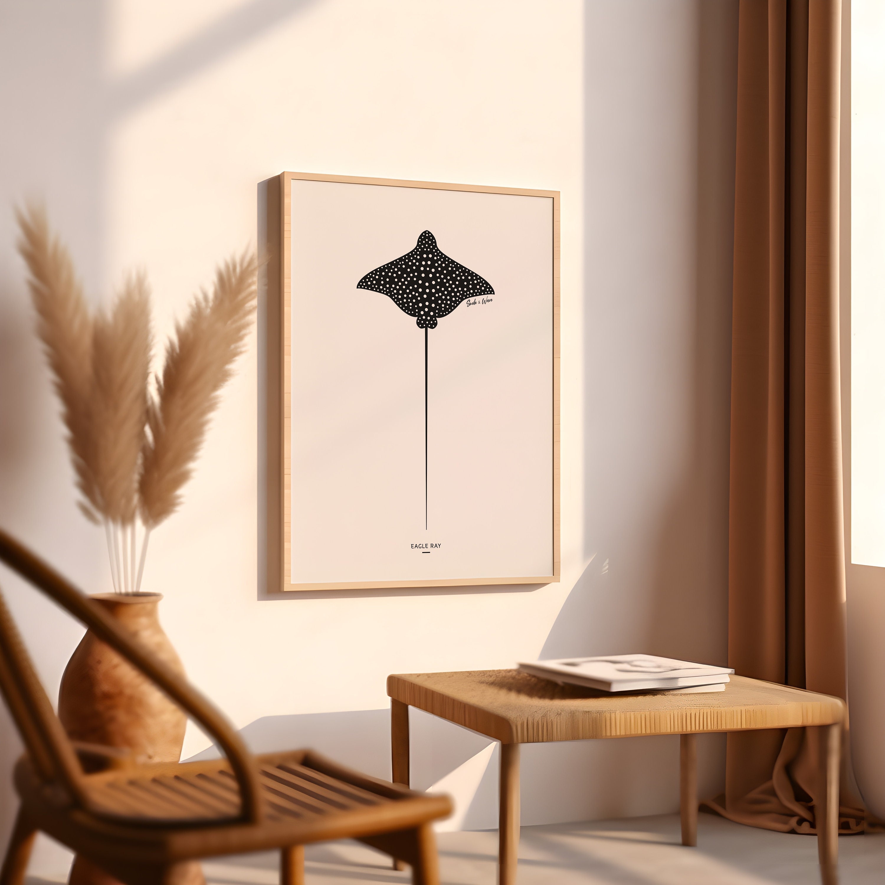 Eagle Ray Art Print, Scuba Diving Poster, Marine life Wall Art, Oce...