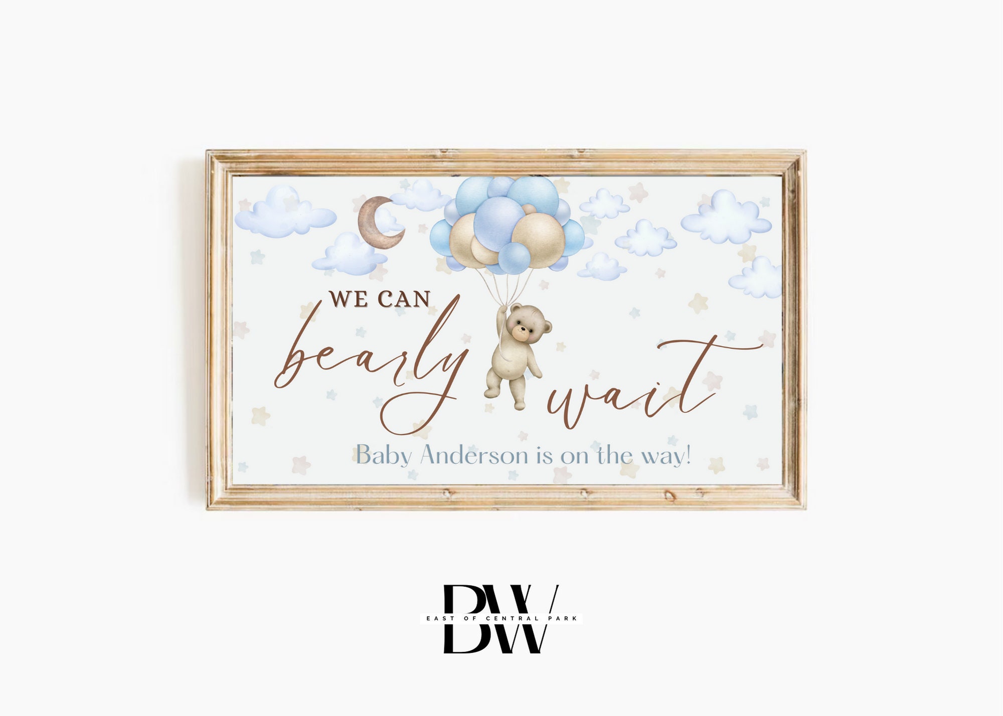 Frame TV Art | Custom Baby Shower Art | We Can Bearly Wait, Boy | F...