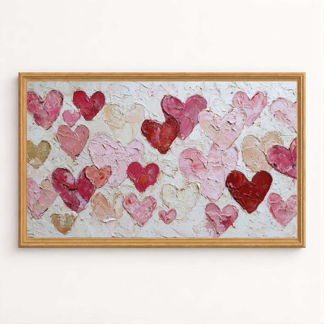 "Frame TV Art for Valentine's Day celebration - Neutral Hearts Abstract Impasto Oil Painting - ...