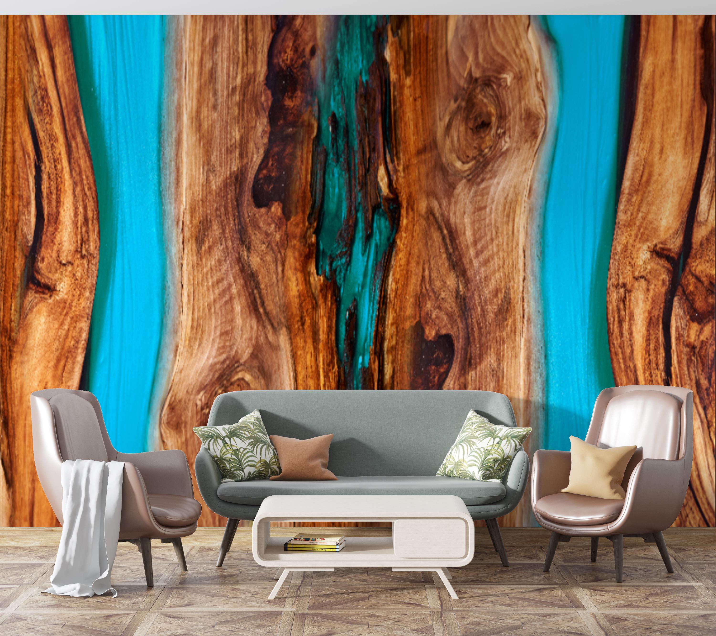 Blue Wooden Wallpaper For Living Room Turquoise Wood Tiles Wallpape...