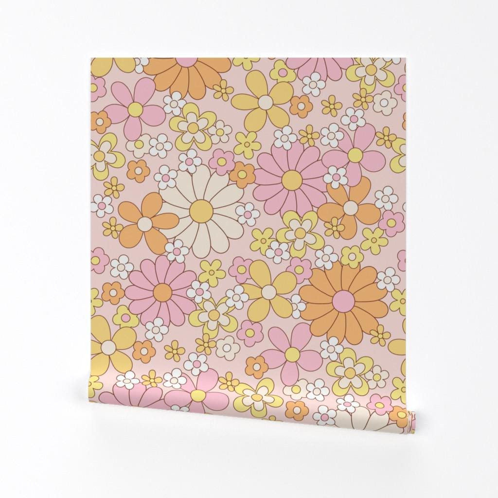 Vintage Floral Removable Peel and Stick Wallpaper - Retro Flowers G...