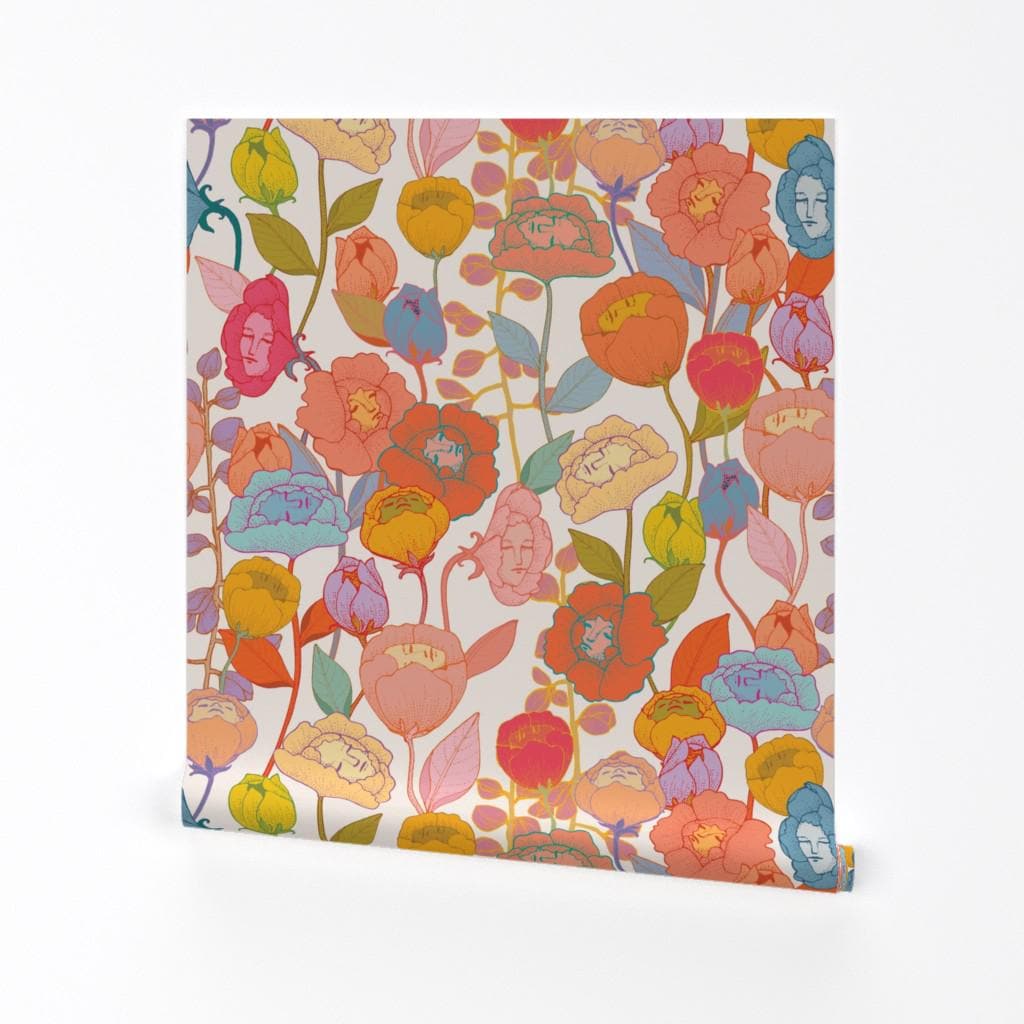 Whimsical Removable Peel and Stick Wallpaper - Flower Faces Flowers...