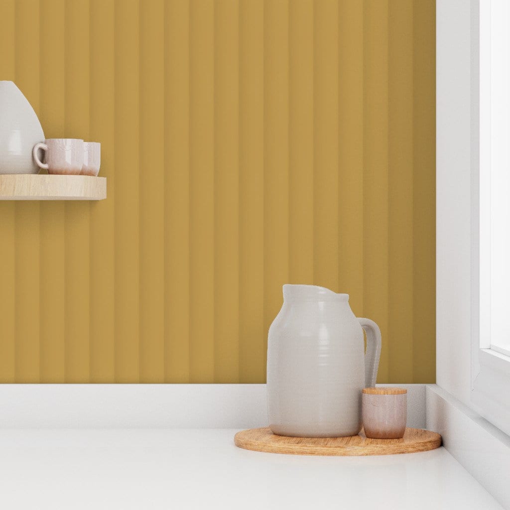 Curved wall panelling wallpaper, wall panel wallpaper, mustard wall...