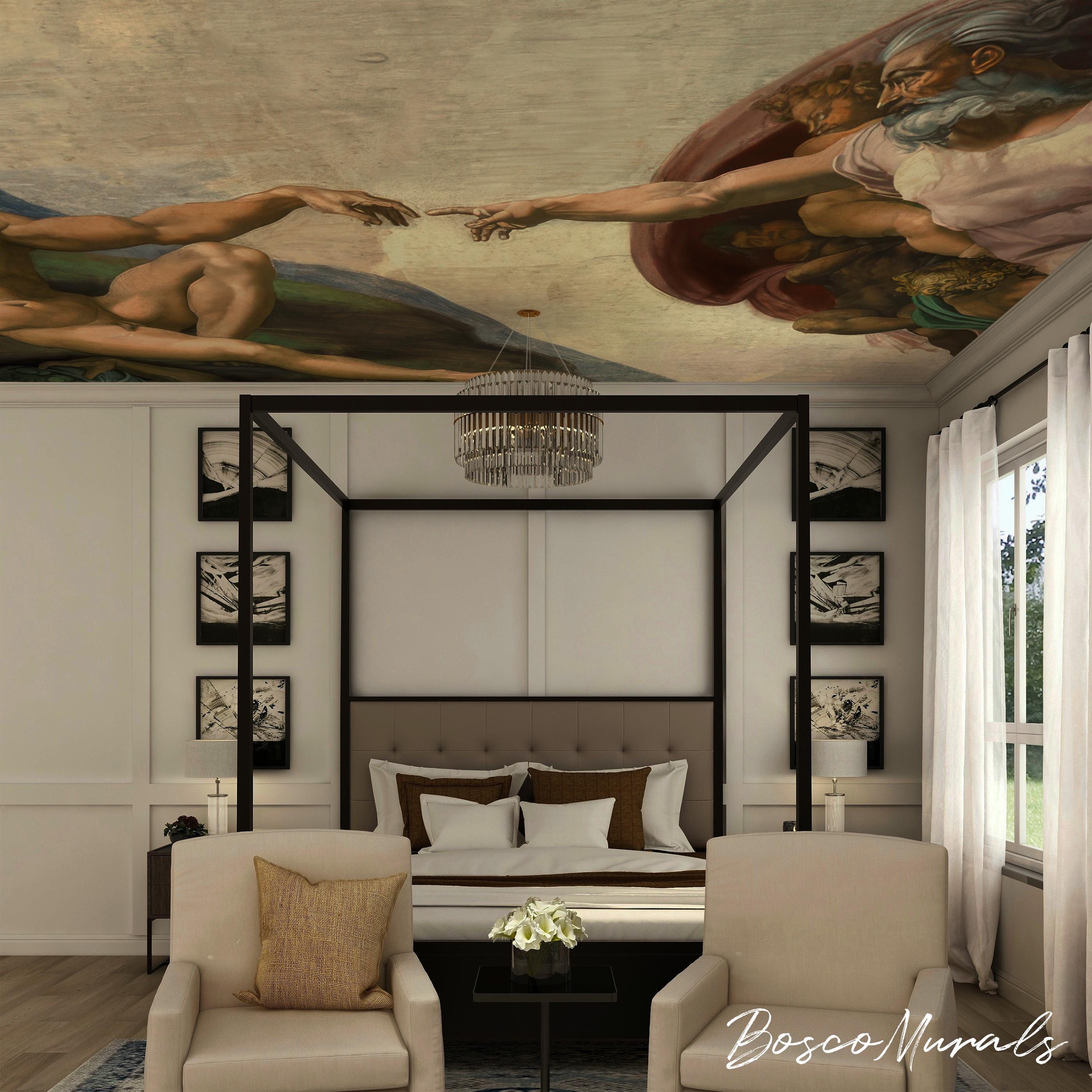 Creation of Adam Wallpaper, Michelangelo Famous Art Mural, Renaissa...
