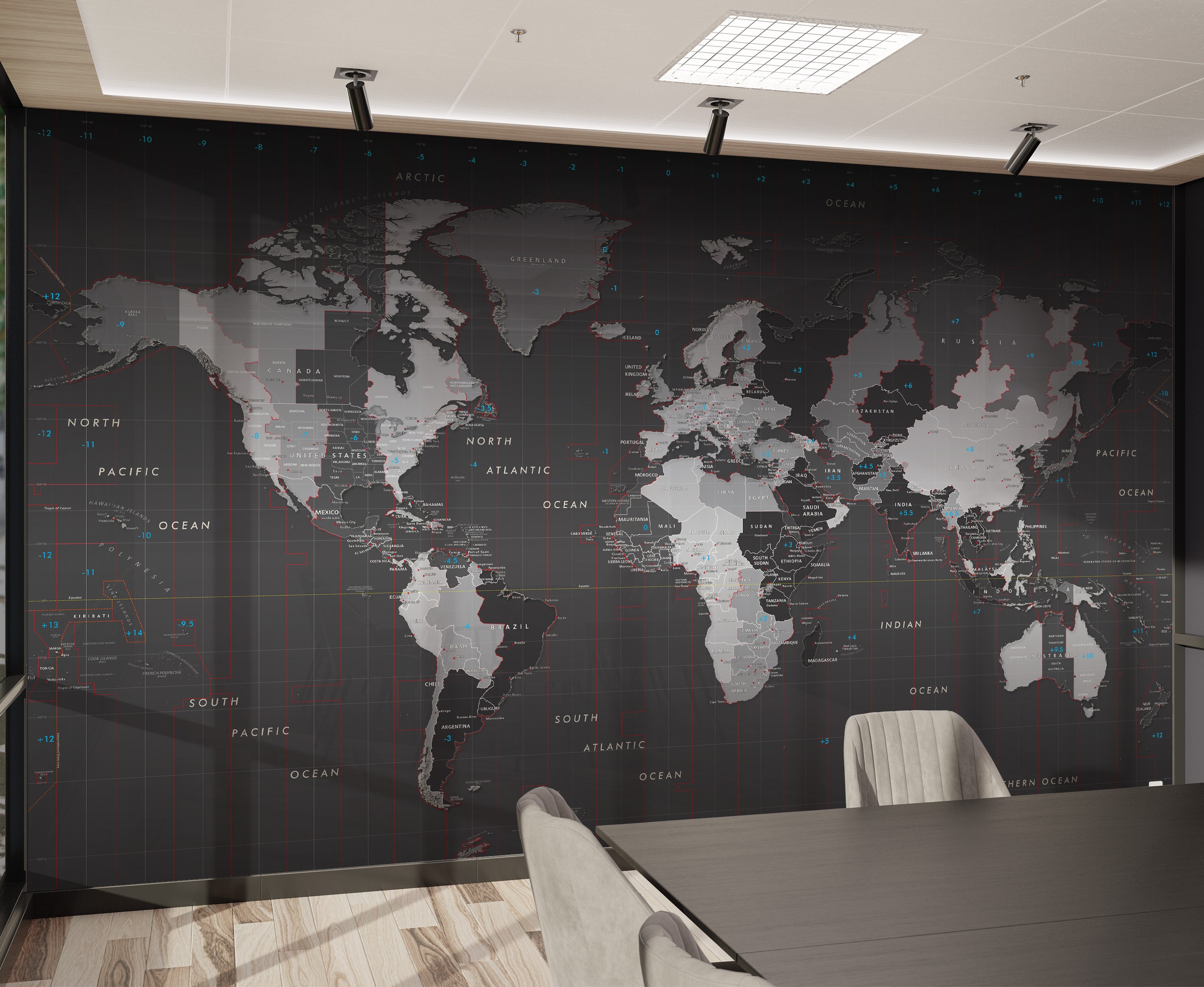 Giant Time Zone World Map Mural - Peel & Stick Removable Educat...