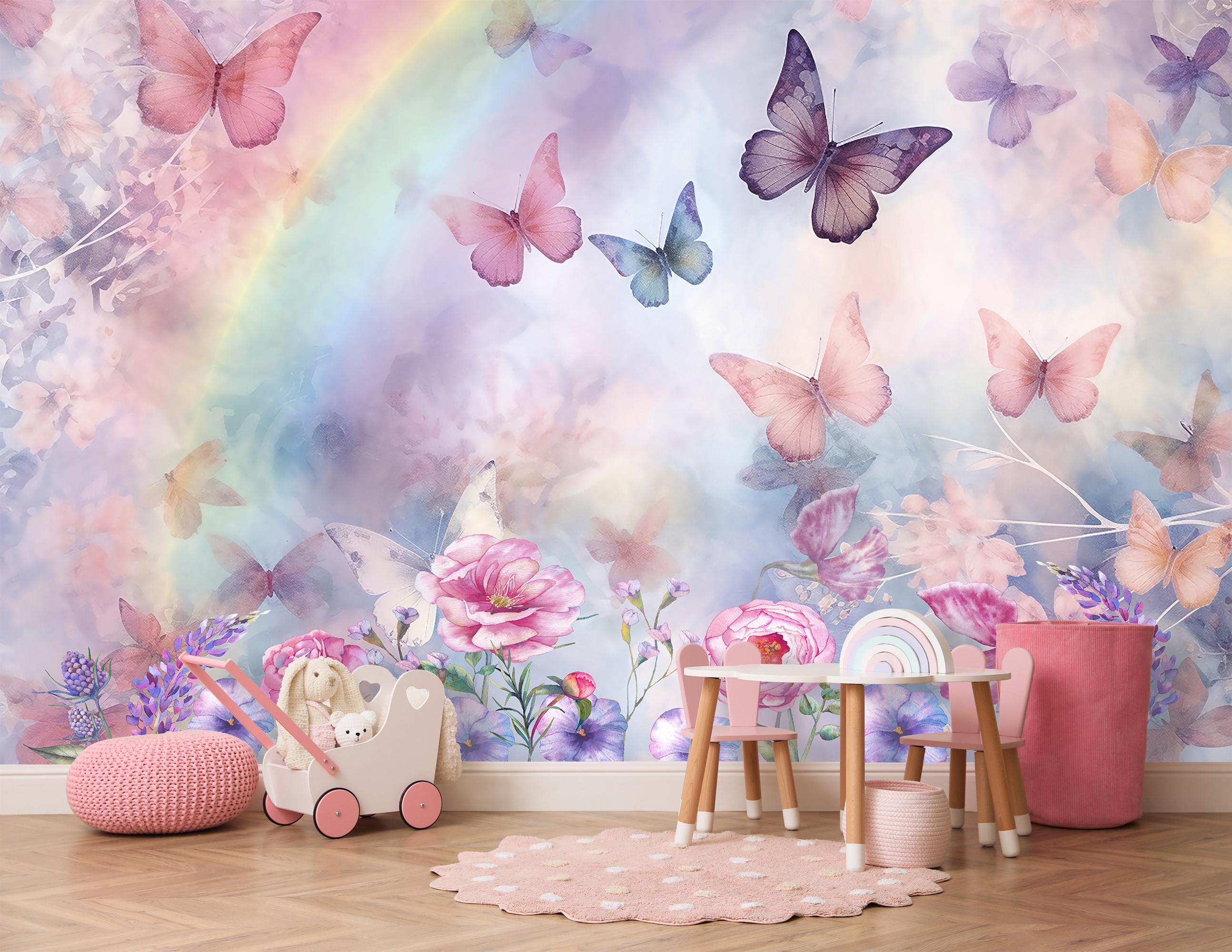 Butterfly Wallpaper Peel and Stick Girls Room, Rainbow Wall Mural N...