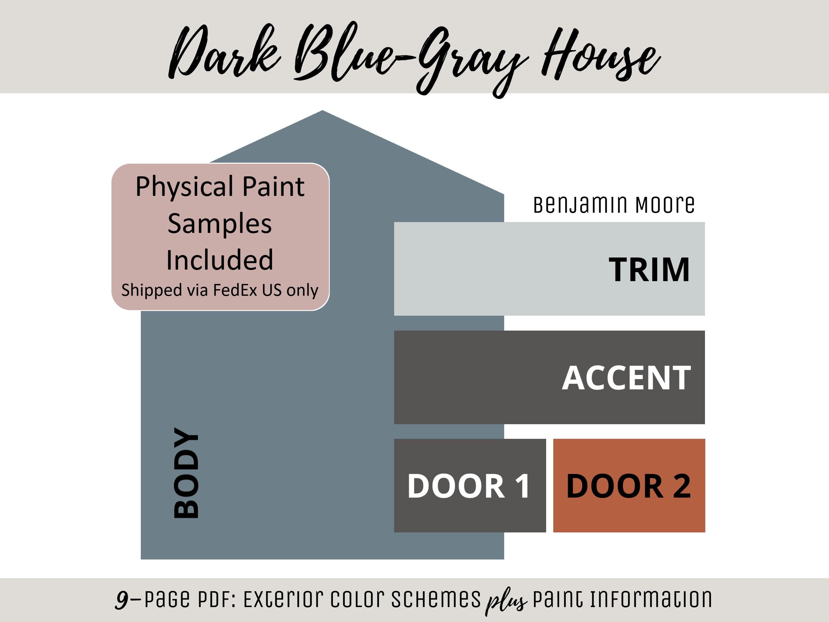 Dark Blue-Gray House & Gray Trim Color Scheme | Benjamin Moore Exterior House Paint Palette This...
