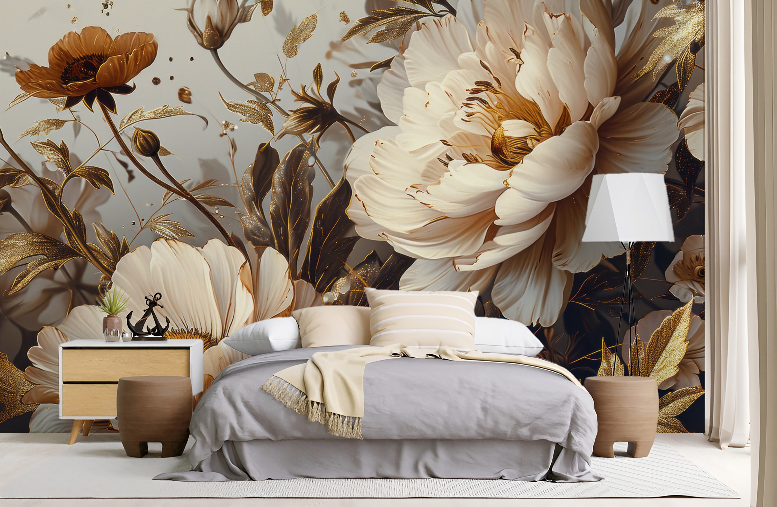 "Indulge in opulence with our Gold Floral Wallpaper. The metallic sheen adds a touch of luxury ...