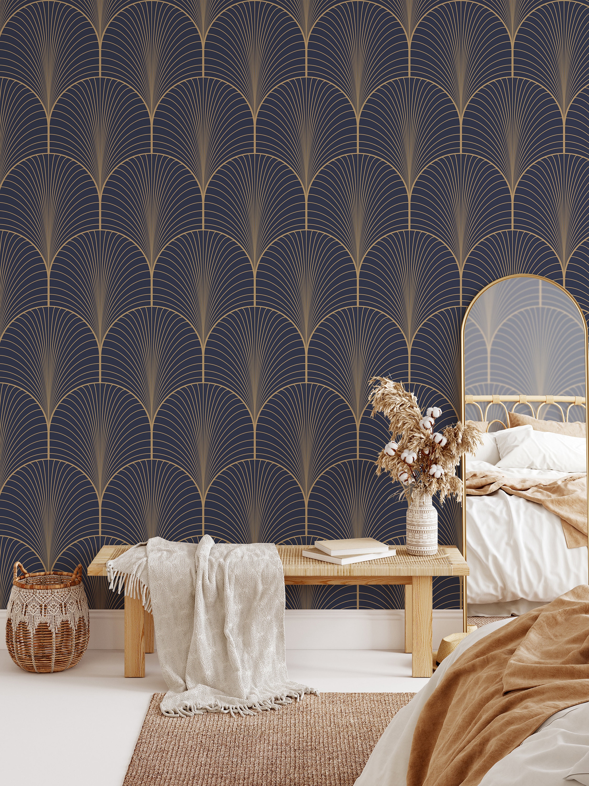 Navy Gold Wallpaper | Art Deco Wallpaper Blue and Gold | Navy Blue ...