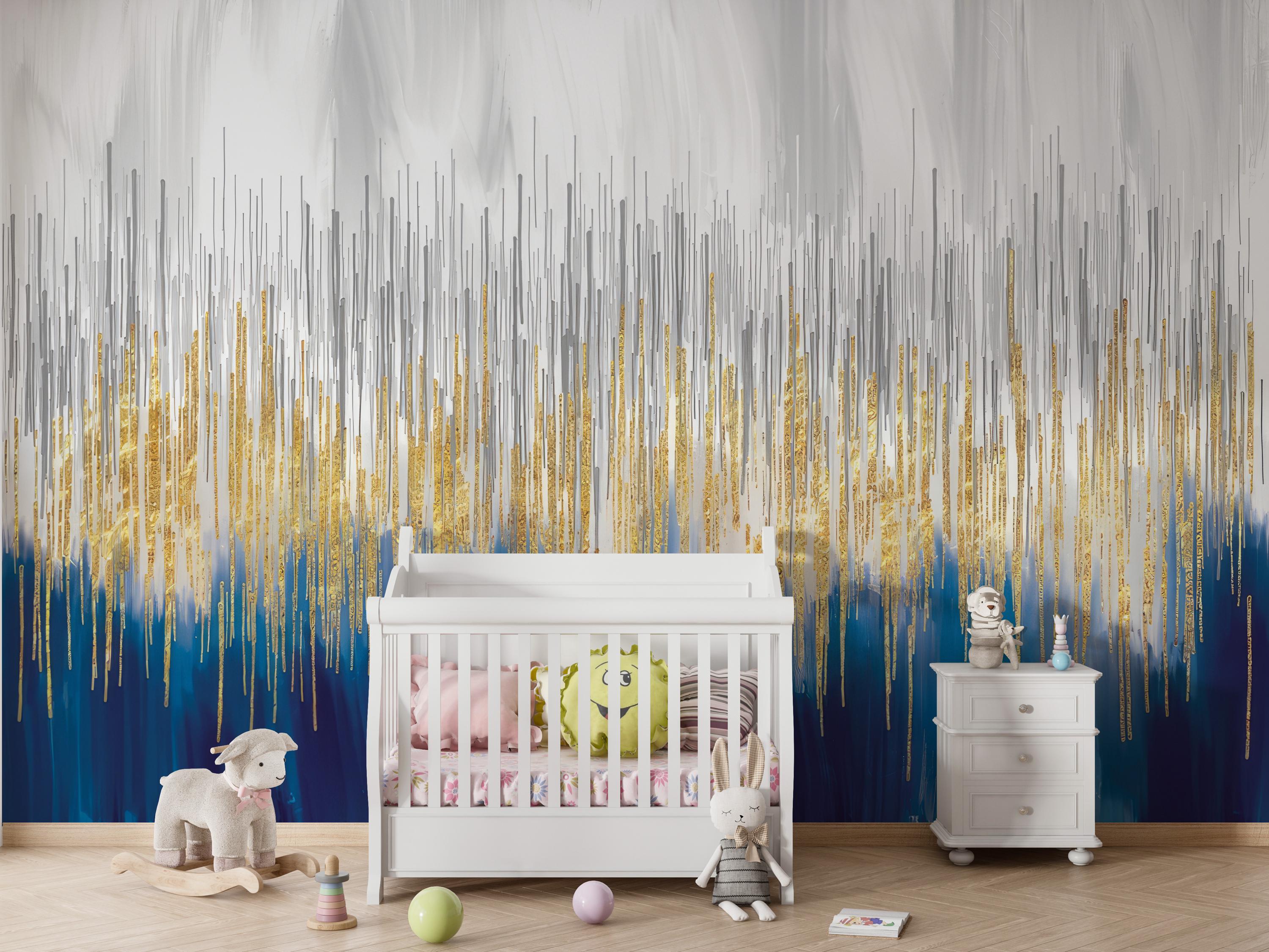Gold Wallpaper, Blue Wallpaper, Golden Line Wallpaper, Trendy Wallp...
