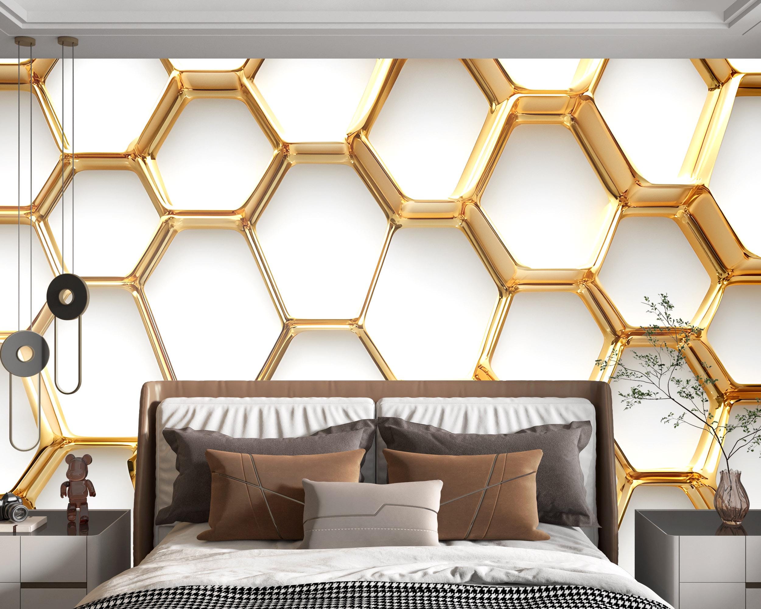 3D Honeycomb Wallpaper / Luxe Gold Wallpaper / Modern Wallpaper / M...