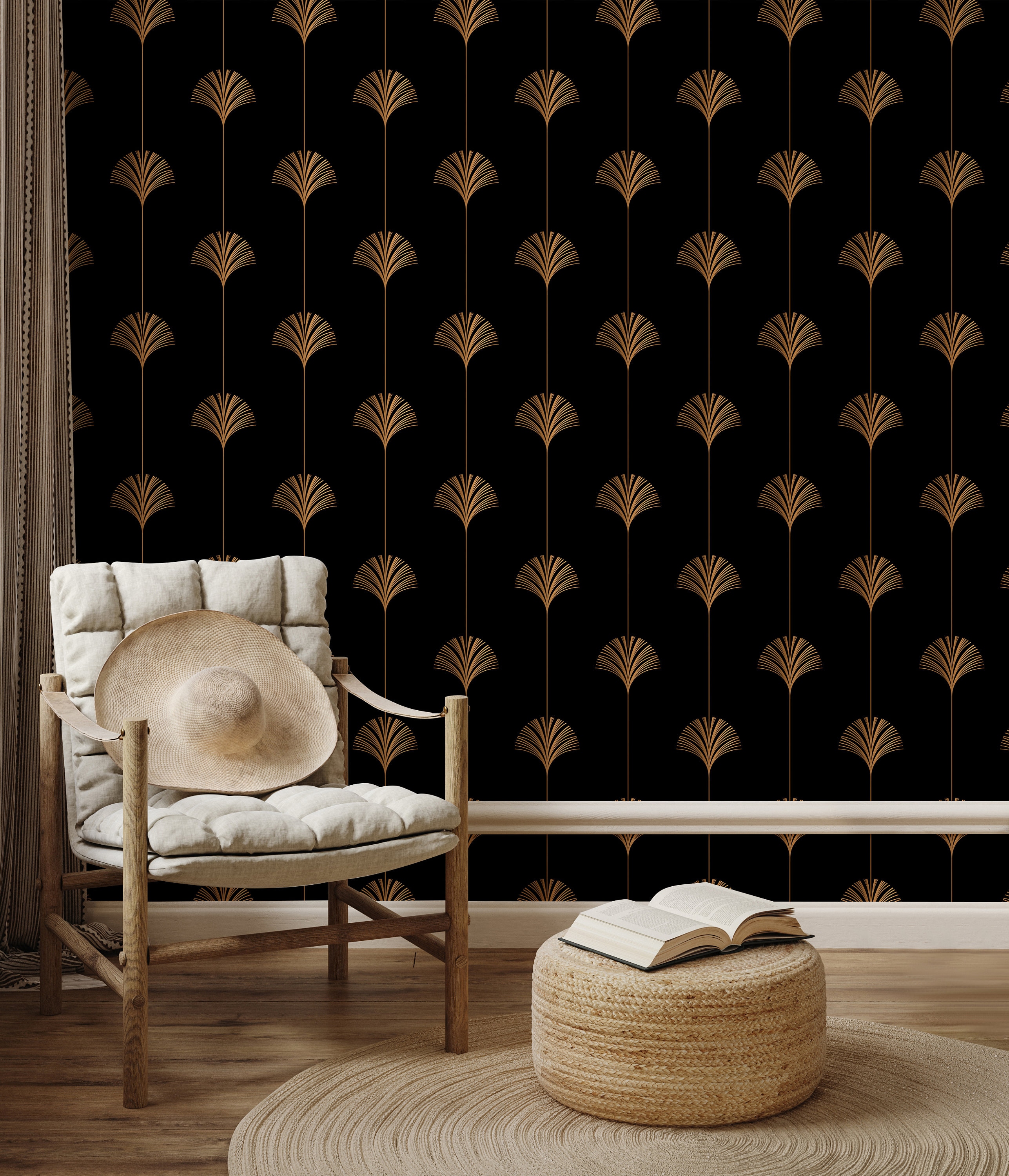 Black and Gold Art Deco Wallpaper Peel and Stick | Removable Wallpa...