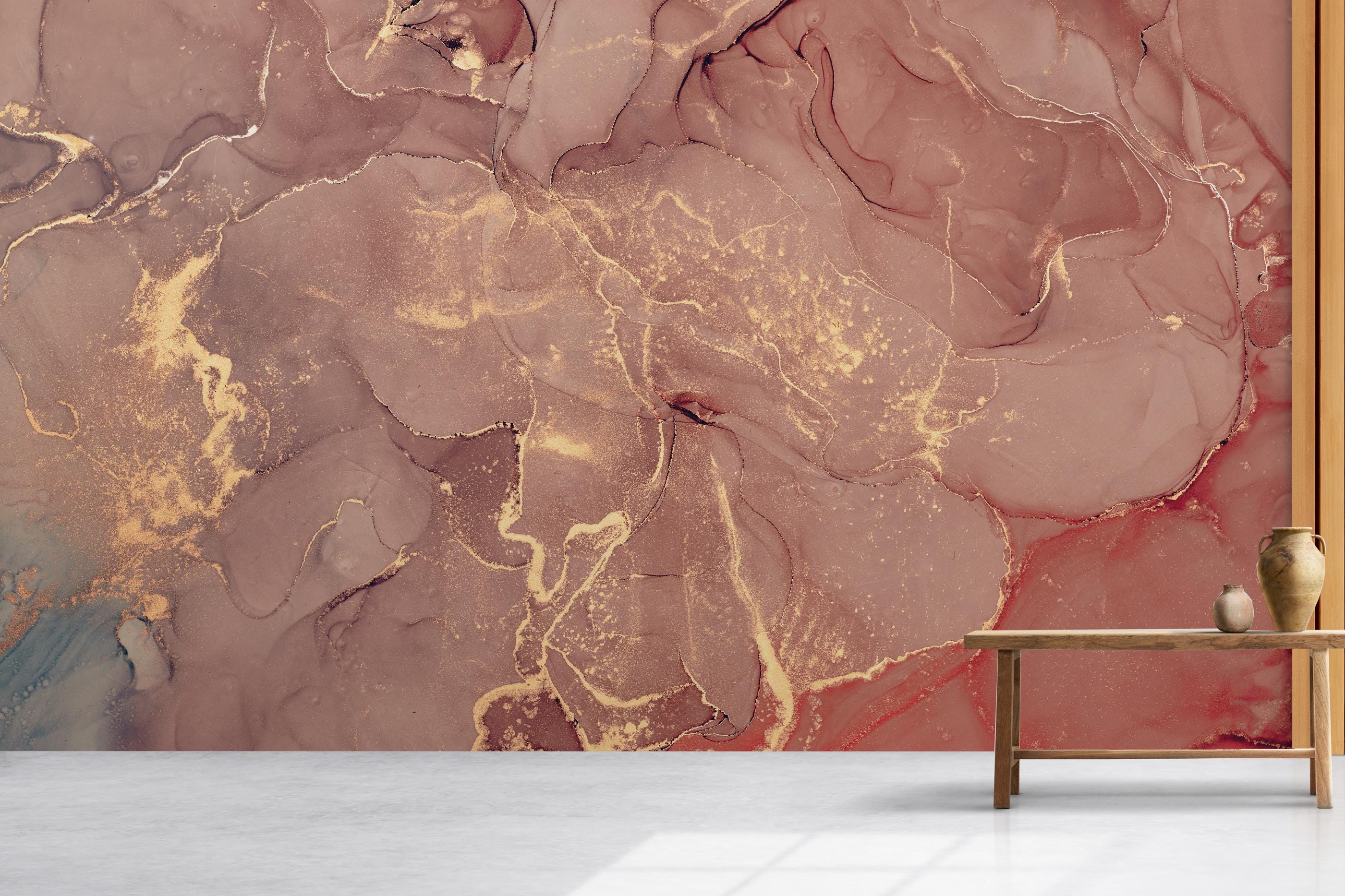 Pink Looks Gold Abstract Wallpaper | Luxury Pink Marble Wallpaper |...