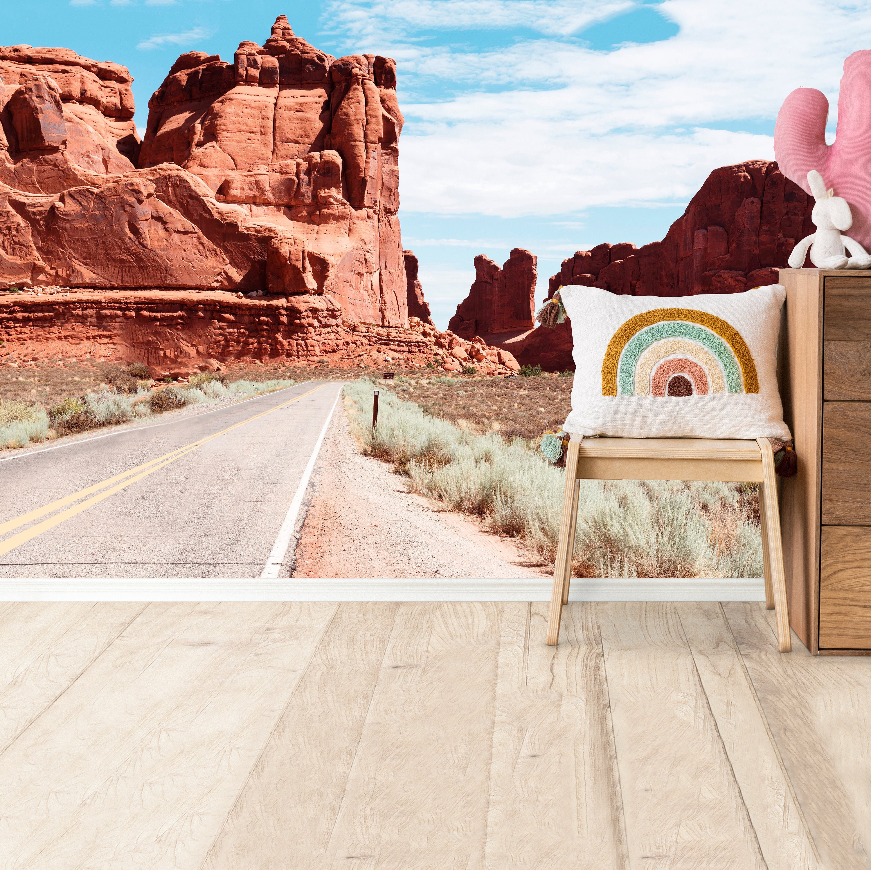 "Transform your bedroom into a breathtaking desert oasis with this removable Canyon Wallpaper m...
