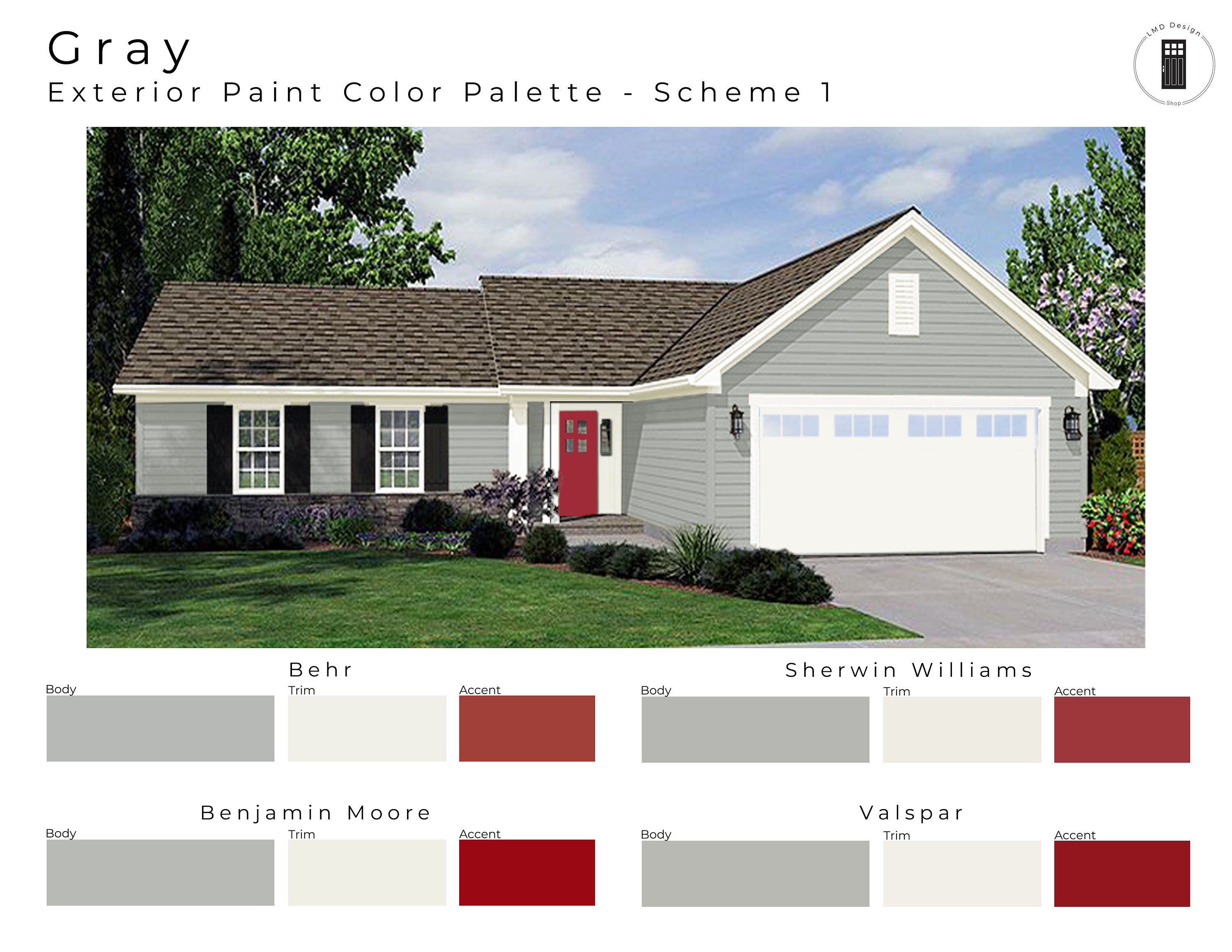 Gray (Light to Mid Tone) - 4 Pre-Made Exterior Paint Color Schemes This listing is for four gray pre...