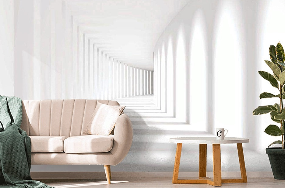 3D Corridor Wallpaper Mural - White Hallway Wall Decor