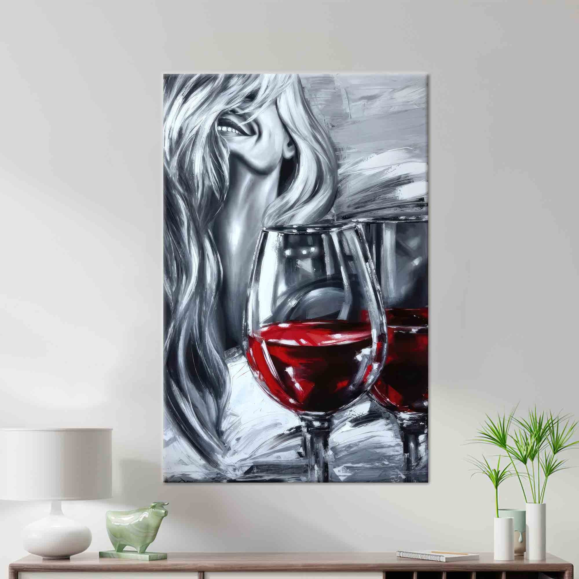 Woman And Wine Art, Girl Wall Decor, Red Wall Art, Black And White ...