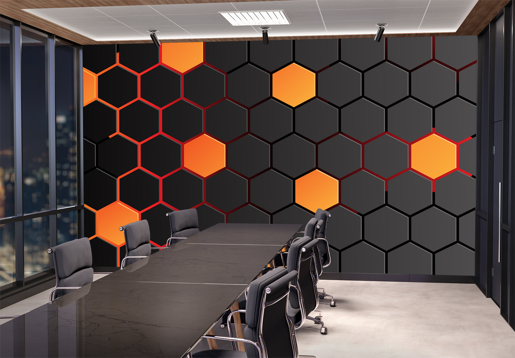 Hexagons Orange Wallpaper Geometric Hi-Tech Abstract Wall Mural Pri...