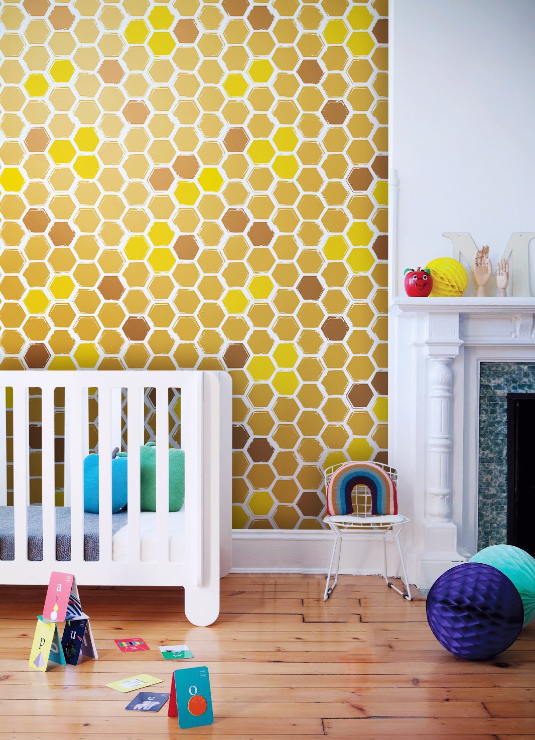 Simple Honeycomb Wallpaper, Removable Wall Mural, Yellow, White, Wa...