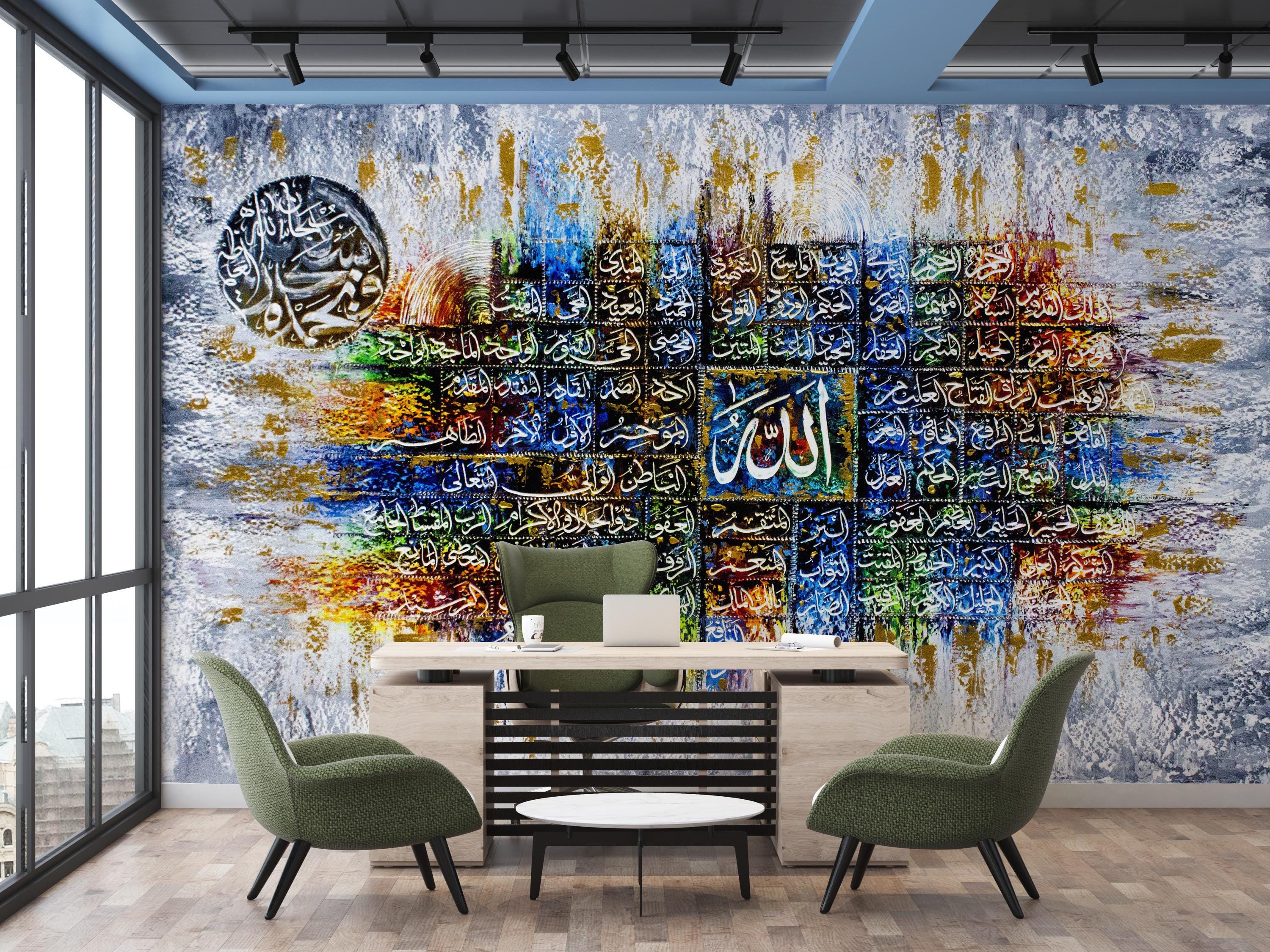 99 Names of God Wallpaper, Islamic Calligraphy Poster for Living Ro...