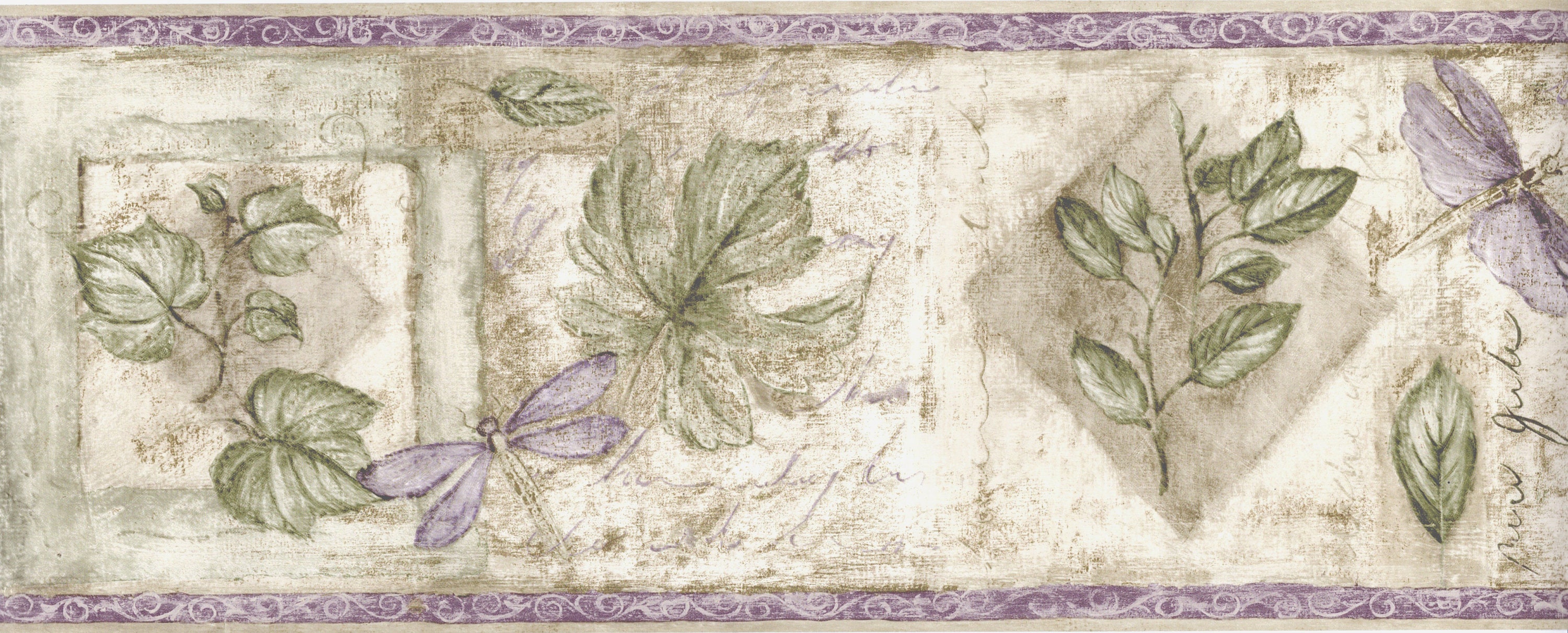 Botanical Wallpaper Border - Ivy Leaf Dragonfly Nature Wallpaper Bo...