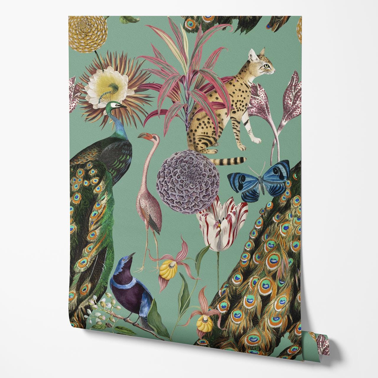 Les Plumes Sea Green A3 Wallpaper Sample, Wall Decor, Dark Decor, L...