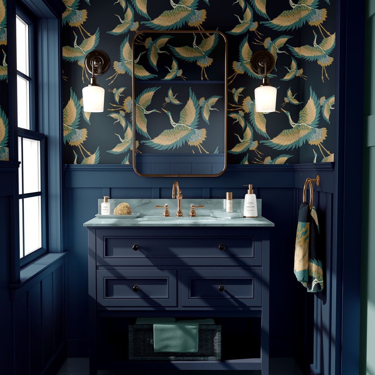 Pachamama Indigo Wallpaper, Wall Decor, Dark Decor, Luxury Wallpape...