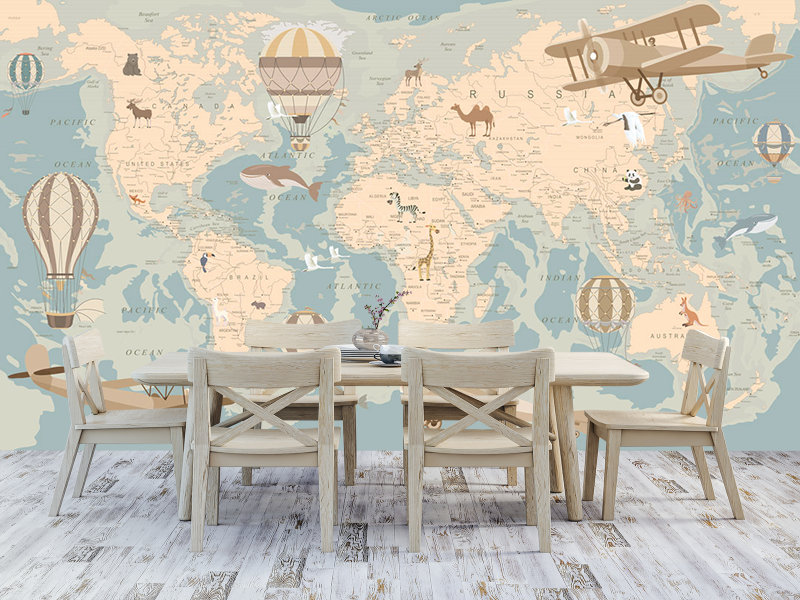 World Map Kids Room Wallpaper, Children Map of the world With Air B...