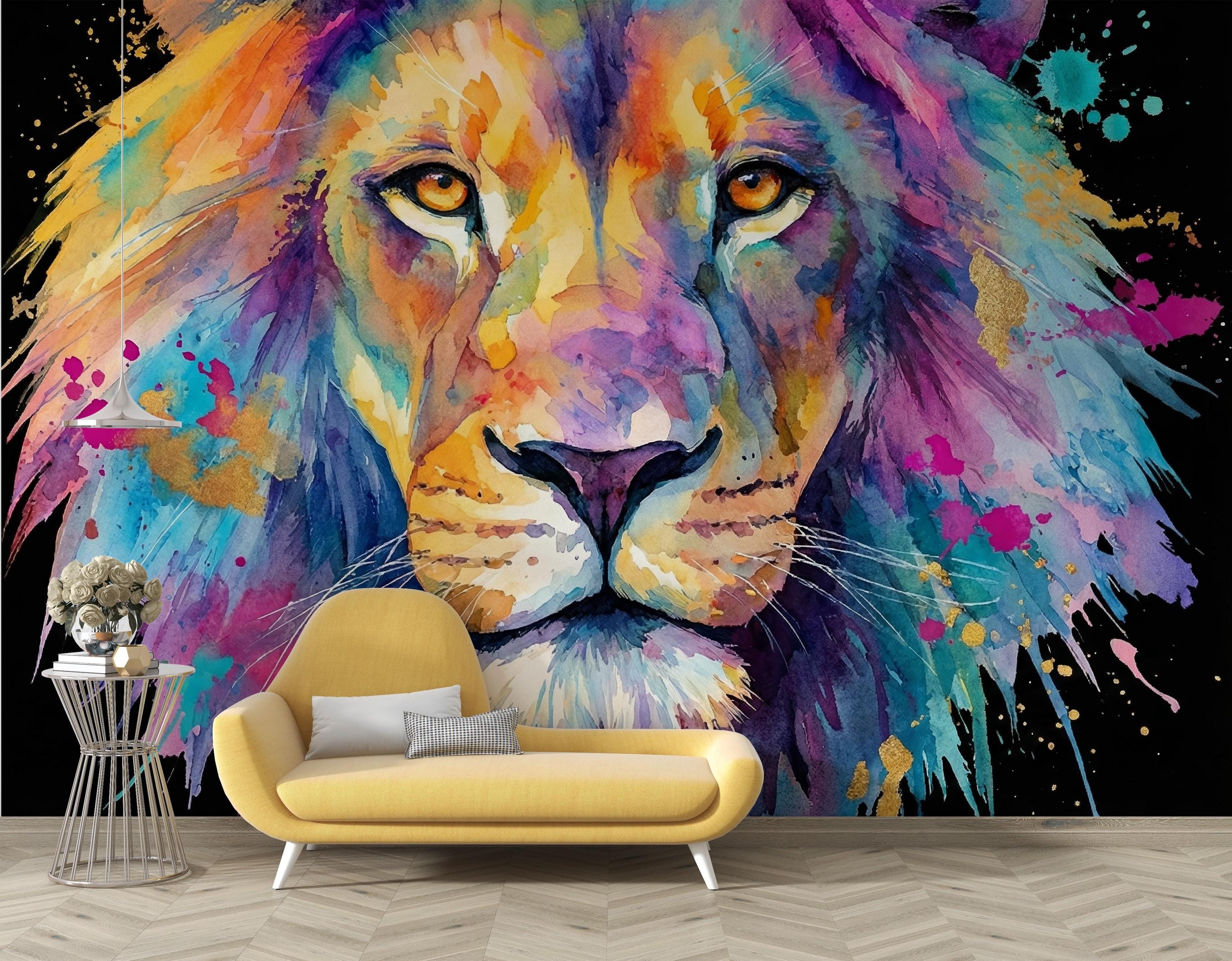Make a bold, artistic statement in your home with this majestic watercolor lion wall mural. This stu...