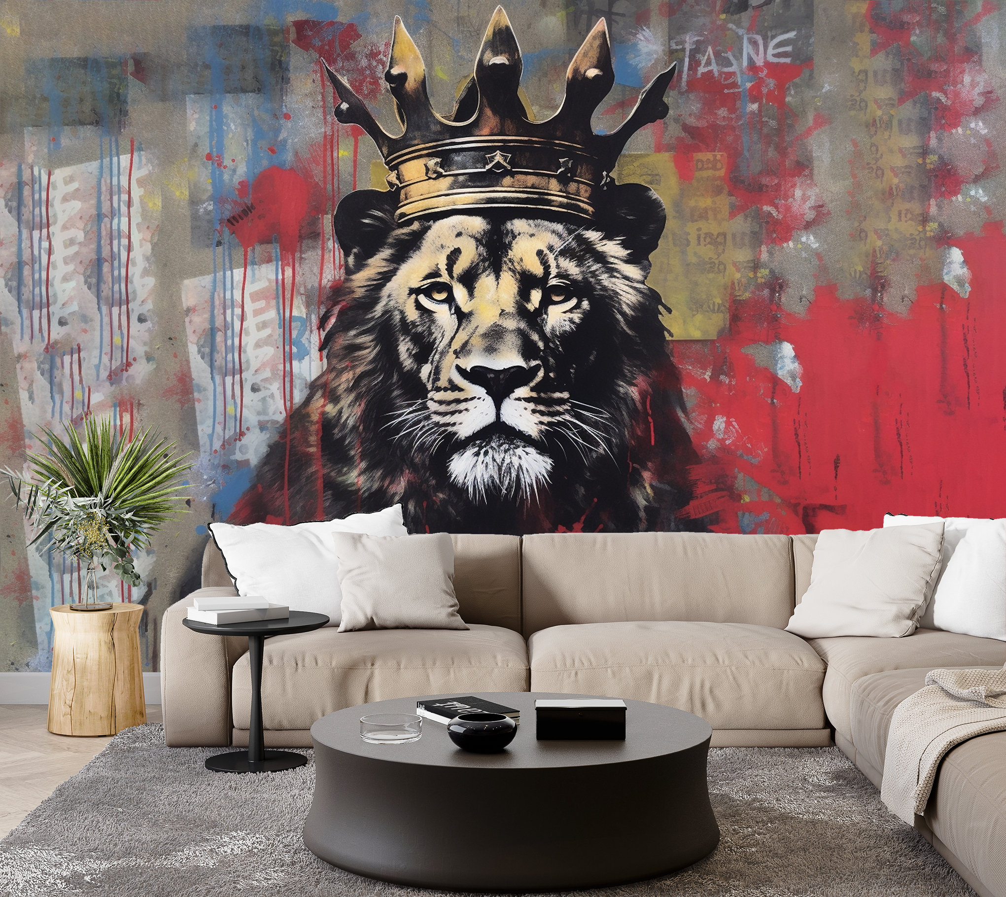 "Lion King Graffiti Crown on the wallpaper is perfect for decorating a bedroom, living room or ...