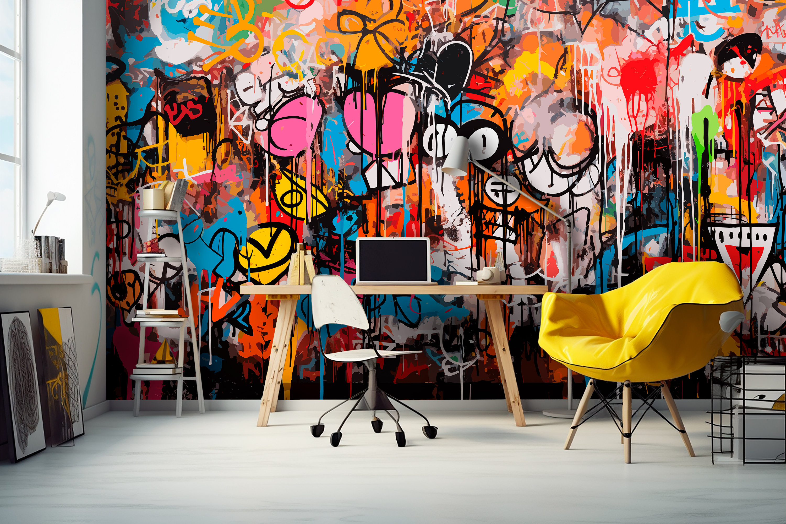 "Graffiti Street Art Wallpaper Peel and Stick Vinyl Urban Wall Mural Abstract Design Modern Liv...