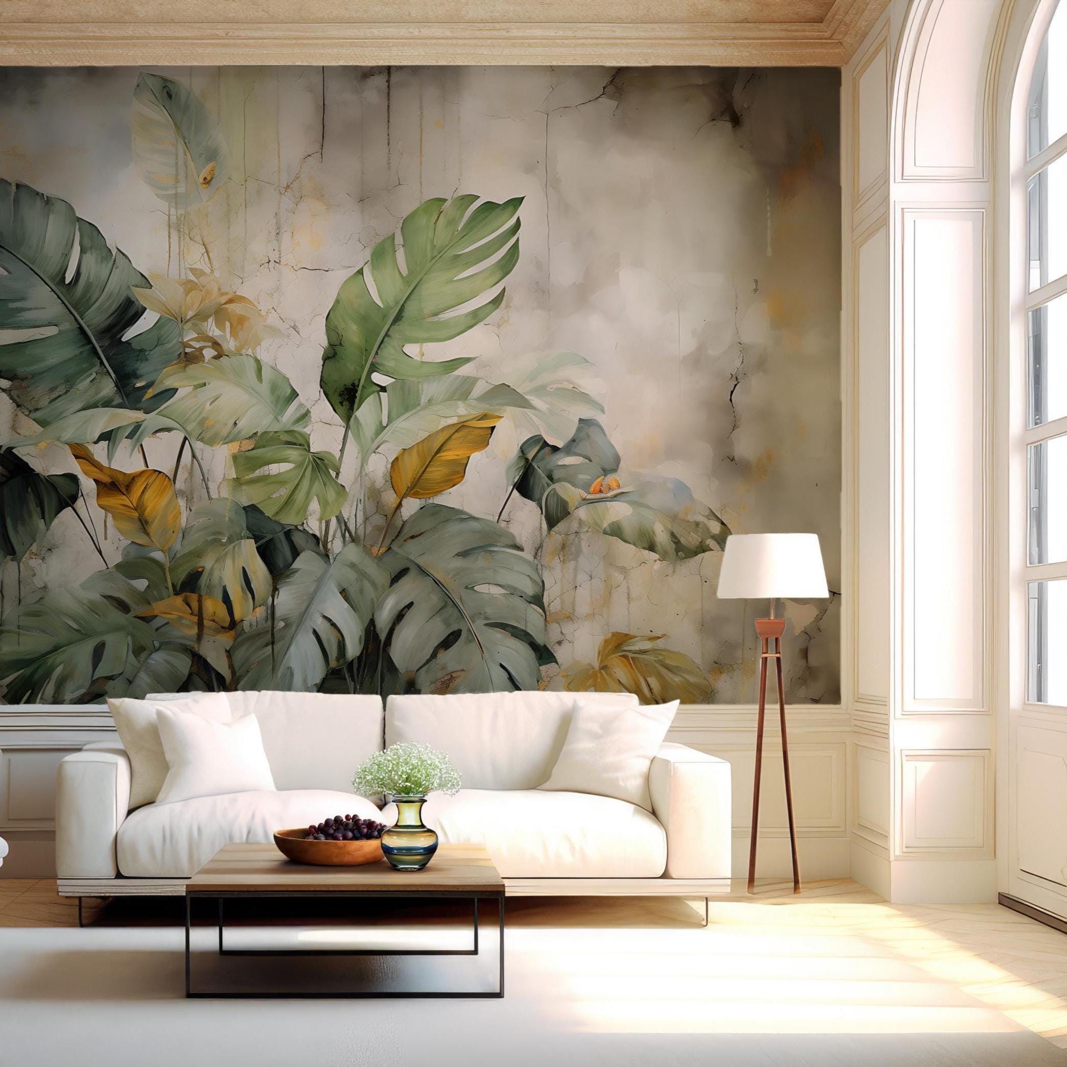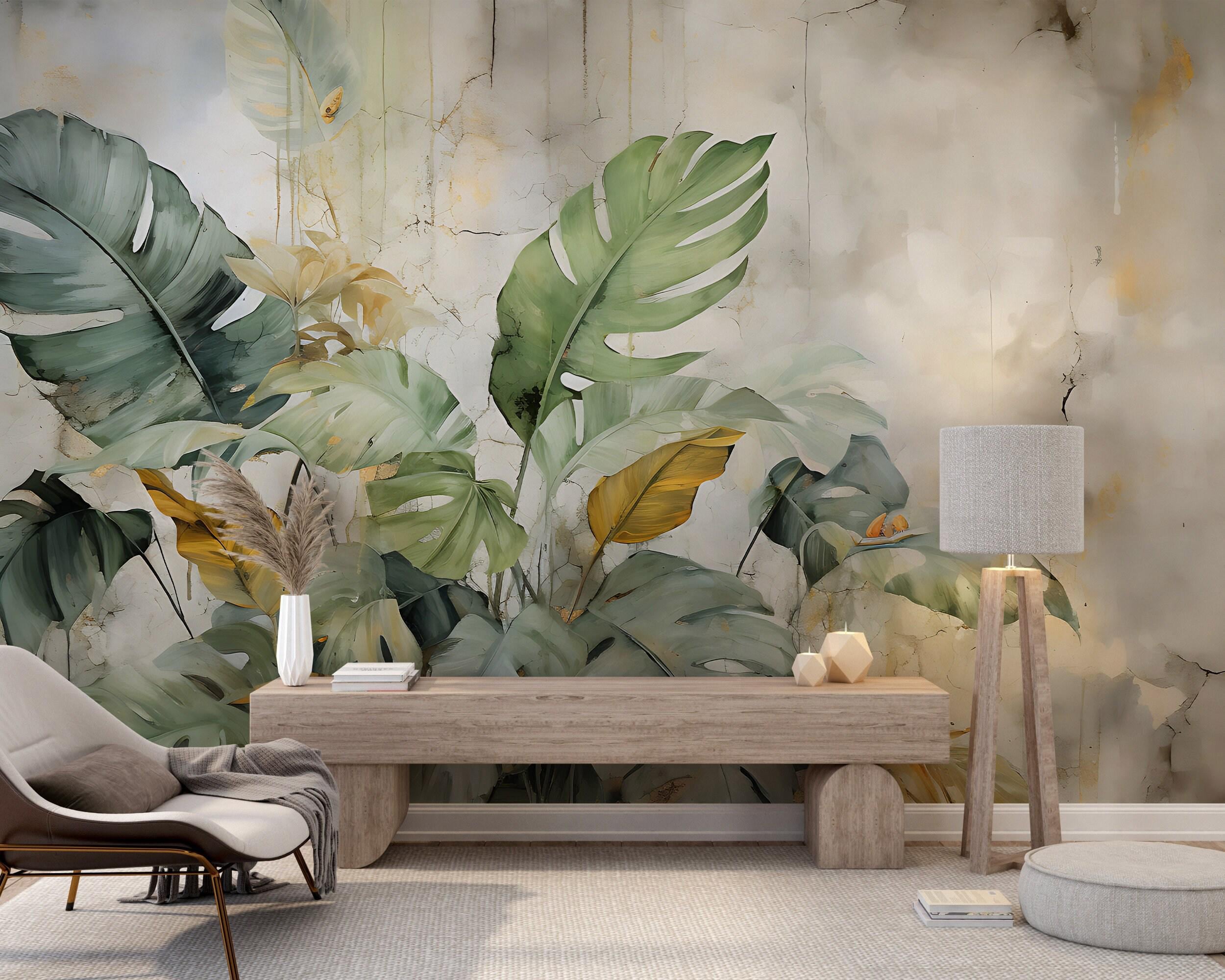 ABSTRACT Concrete Wall with Tropical Leaves | Palm Tropical Wallpap...