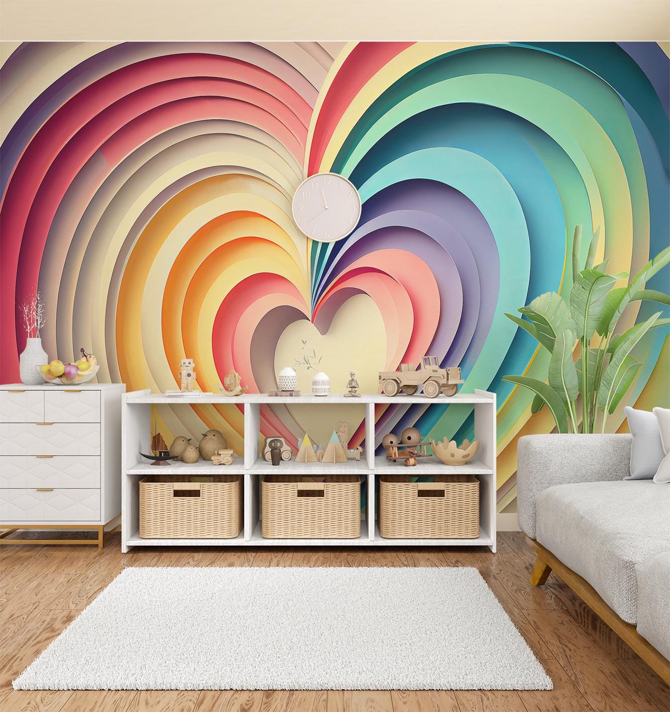 "Rainbow Hearts Love on the wallpaper is perfect for decorating a bedroom, living room or offic...