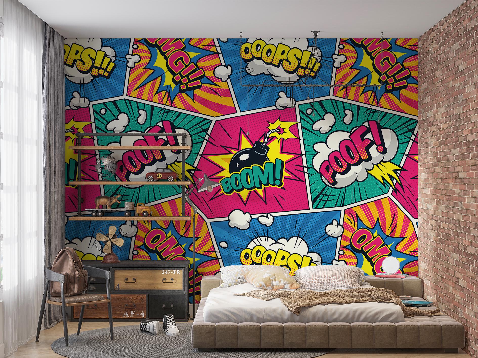Retro Comics Wallpaper Mural Pop Art Peel and Stick Wallpaper Super...