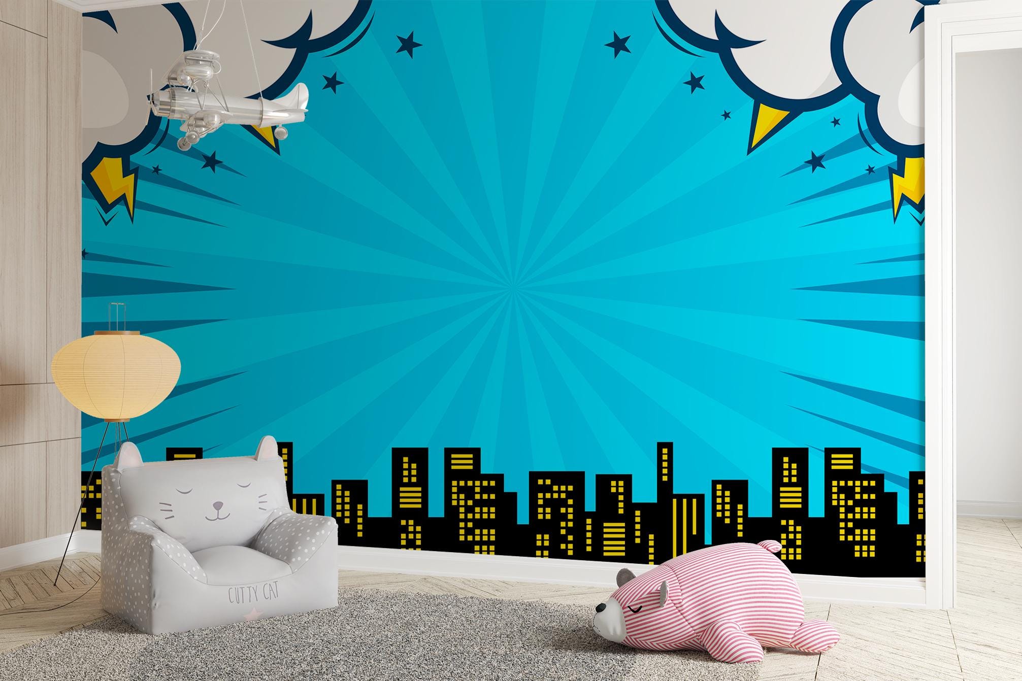 Comic City Wall Mural Superhero Skyline Kids Wallpaper Boys Room Pe...